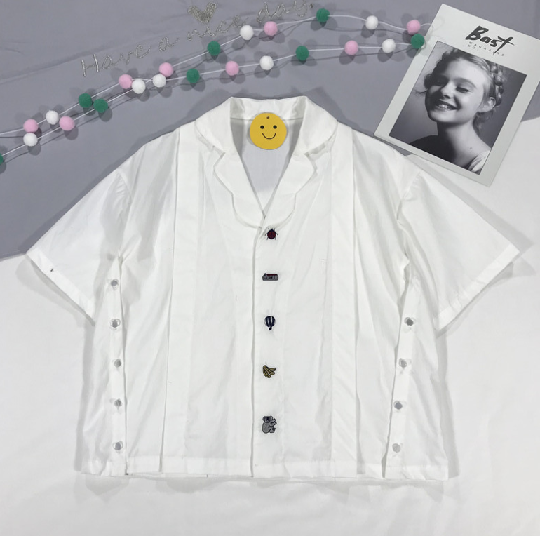 Fashion Design Sweet Women White Cotton Blouse Koala Embroidery Cartoon Animal Button Short Sleeve Summer Ladies Shirt Tops
