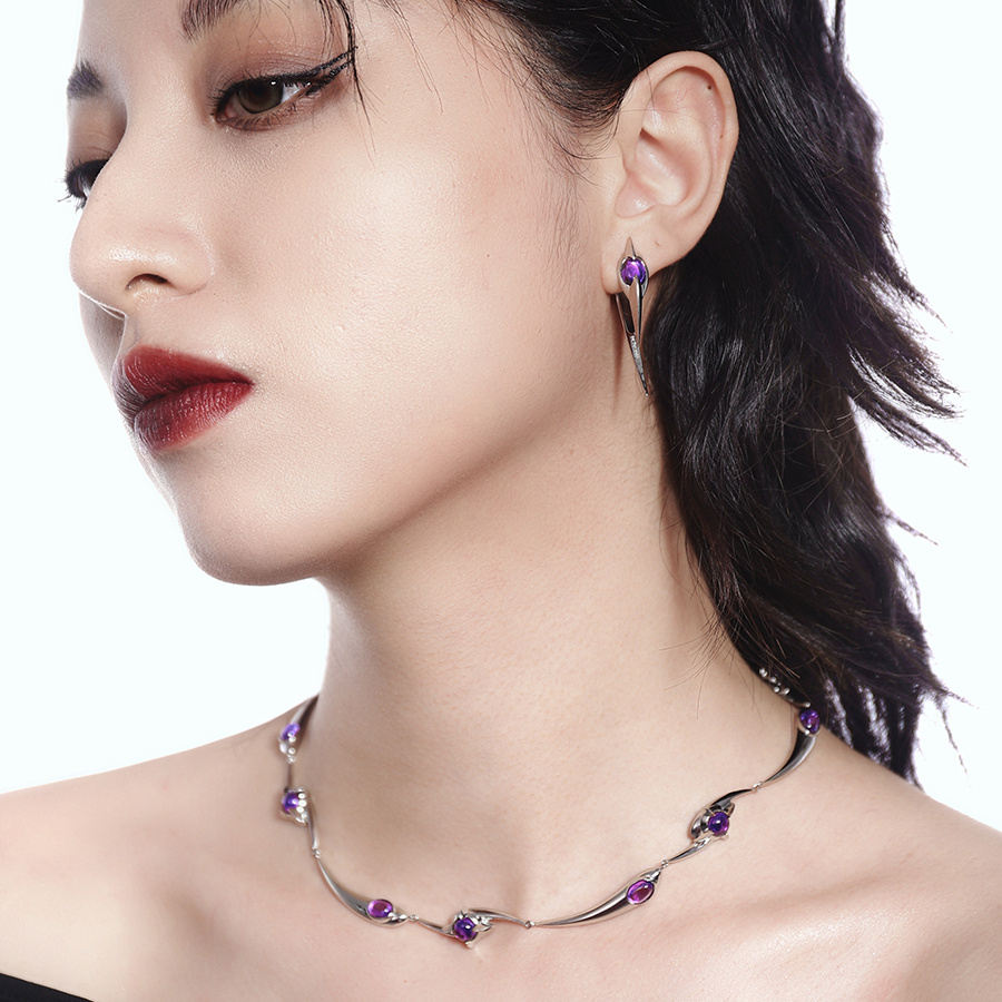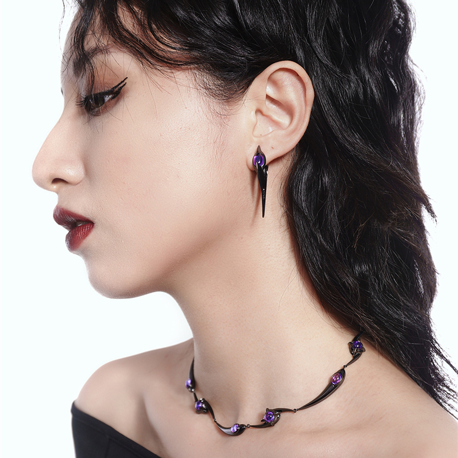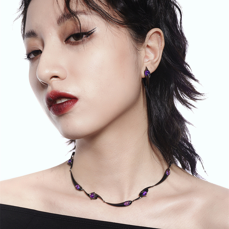 Product information:Material: Copper plated platinum, zirconStyle: Original DesignApplicable gender: FemaleColor classification: black purple, silver purpleSize: 32cm (excluding 10cm tail chain)