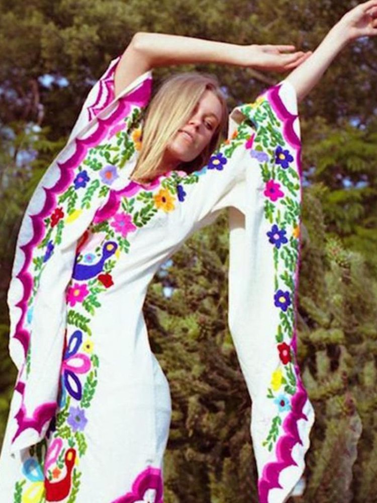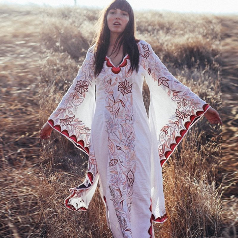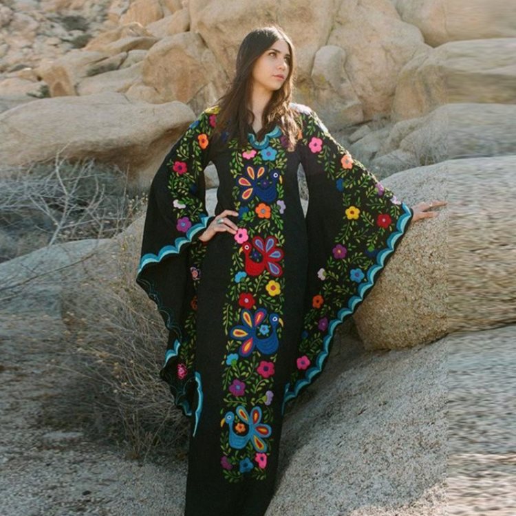 2. Bat-sleeve printed dress, atmospheric and fashionable