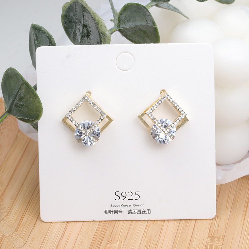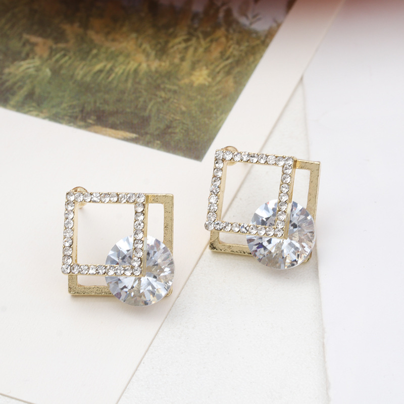 Style: SimpleMaterial: AlloyTreatment process: electroplatingType: EarringsStyle: Women'sShape: squarePackaging: Individually packedInlay material: diamondColor: EHX-477
