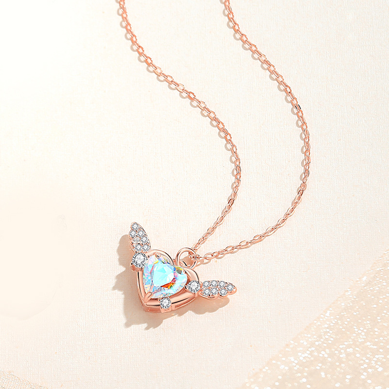 Product information:Color: Heart wing necklace platinum color, heart wing necklace rose gold Chain style: O-ring chain Material: Silver Popular elements: Love/heart Shape: heart shape