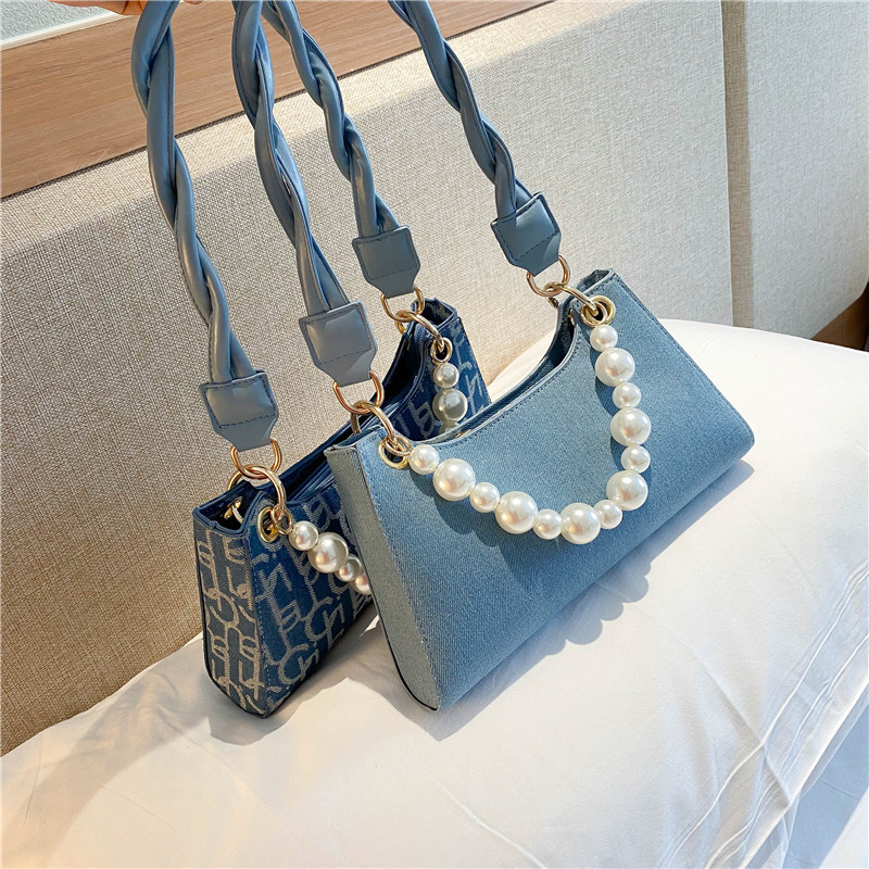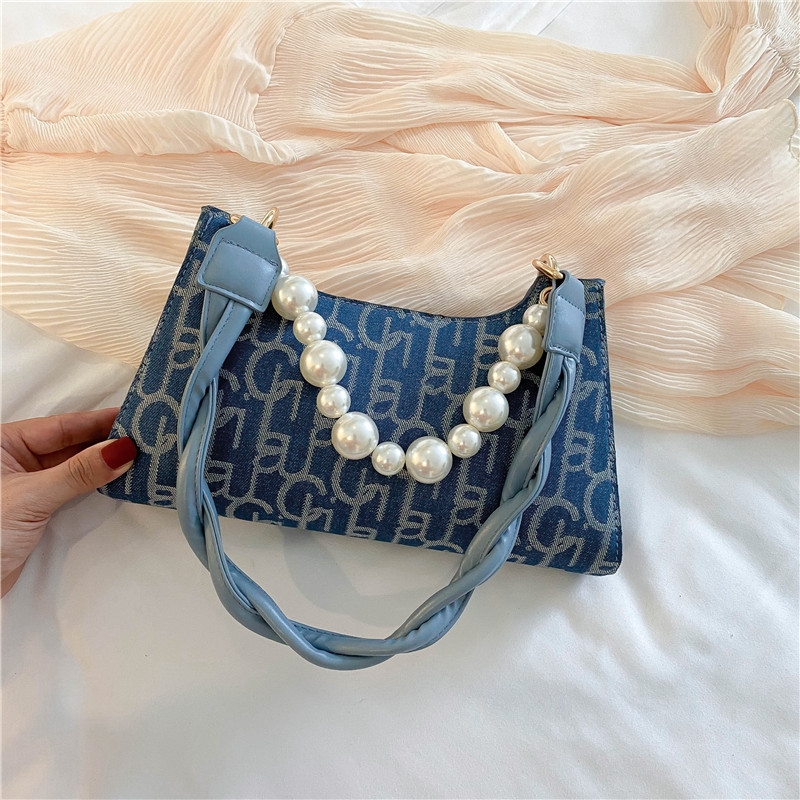 Fabric texture: canvas typeOpening method: zipperPopular element: pearlStrap root number: double rootBag size: smallBag trend style: baguette bag