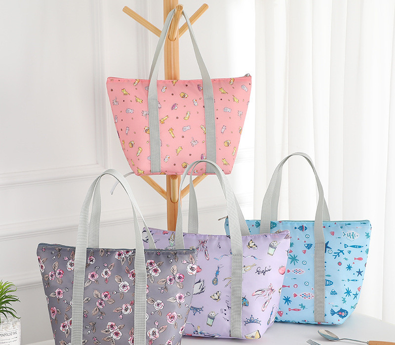 Name: Folding handbagMaterial: Outer layer Oxford fabric, inner layer aluminumFoil pearl cottonColor: Multi-color optionalWeight: 76gSize: 24*15*25cm