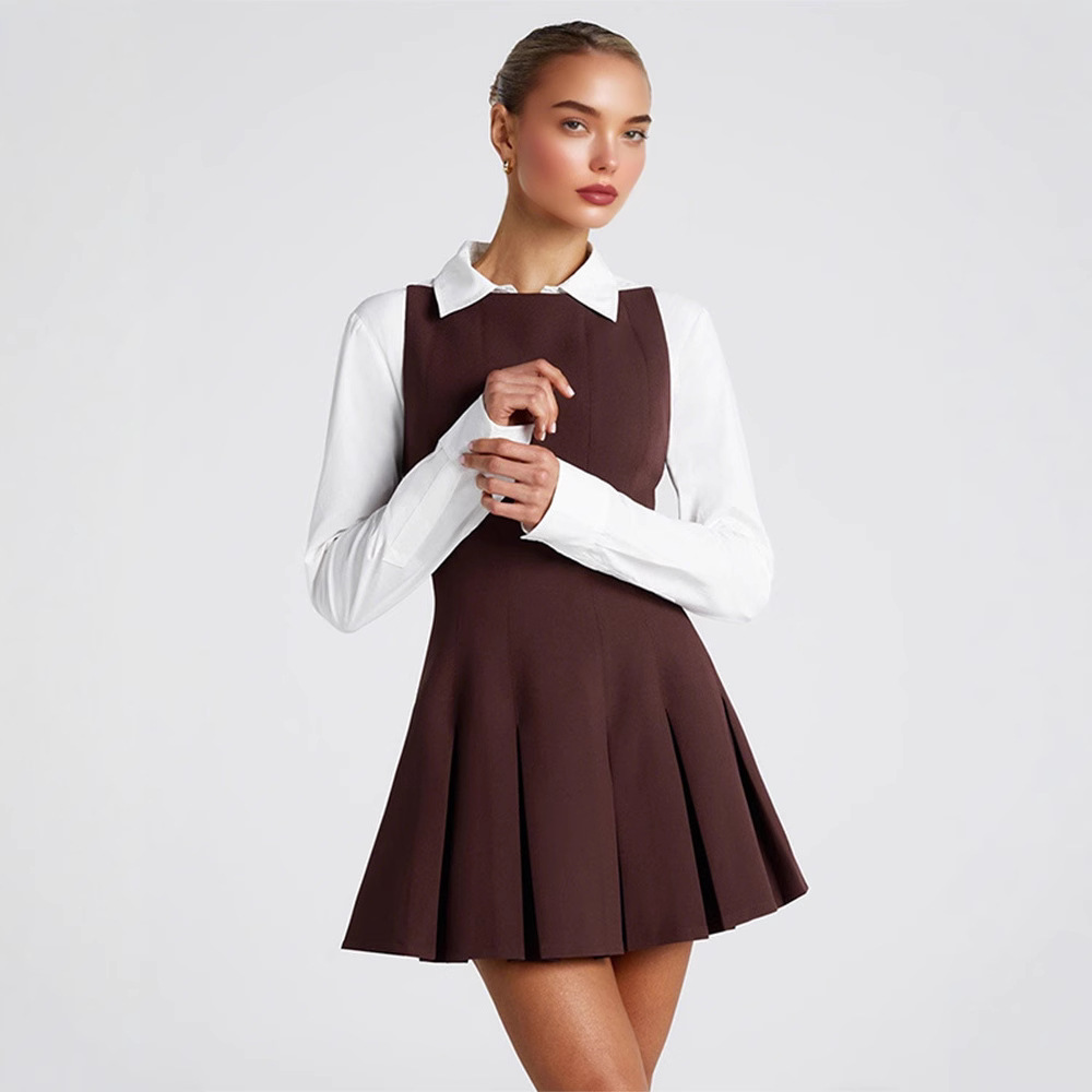 Color: Brown backless pleated skirt-sample