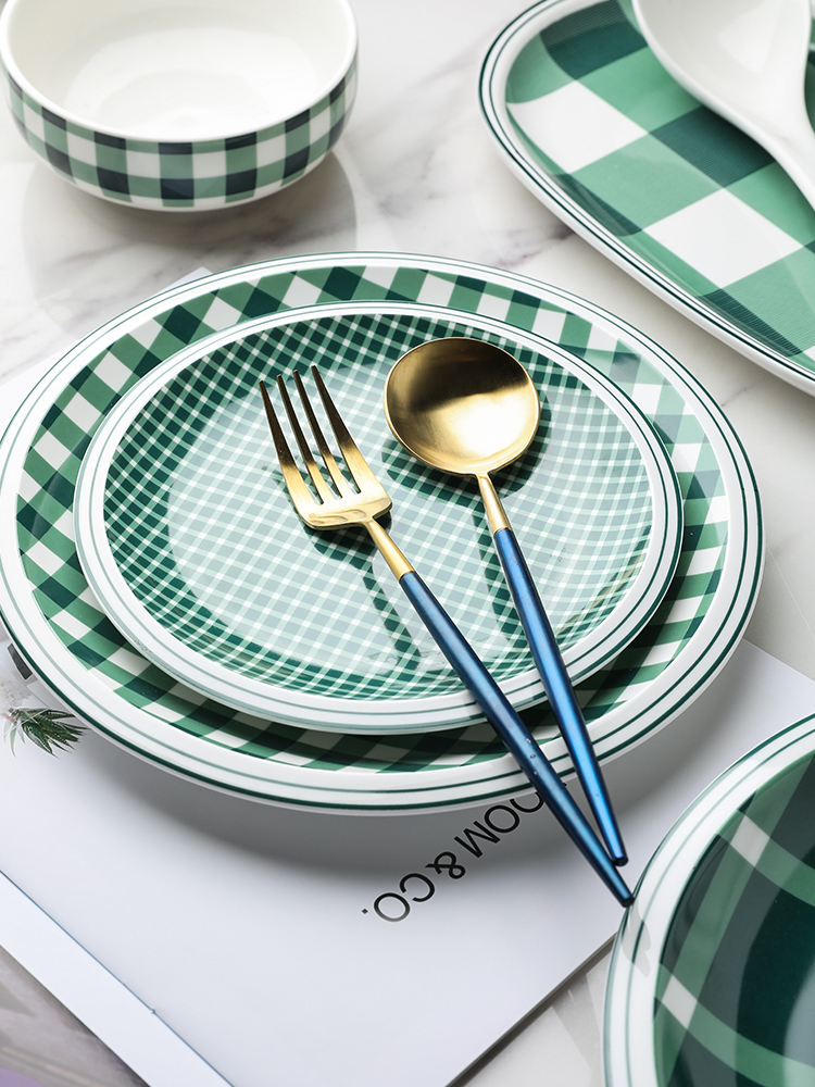 Material: porcelainTea tableware Technology: underglaze colorType: bowl, dish, platePurpose: household noodle bowl steak plate delicate tableware set