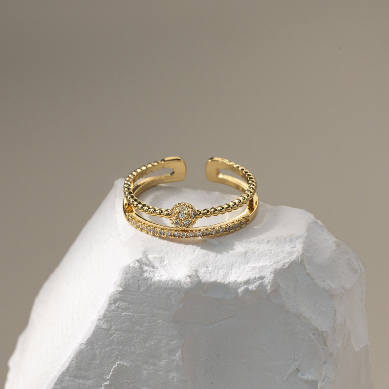 Product information:Type: RingTreatment Process: Micro inlayColor: white, goldApplicable people: womenSize: adjustable openingMaterial: CopperPopular elements: gang drillStyle: net red wind