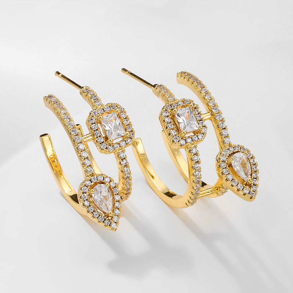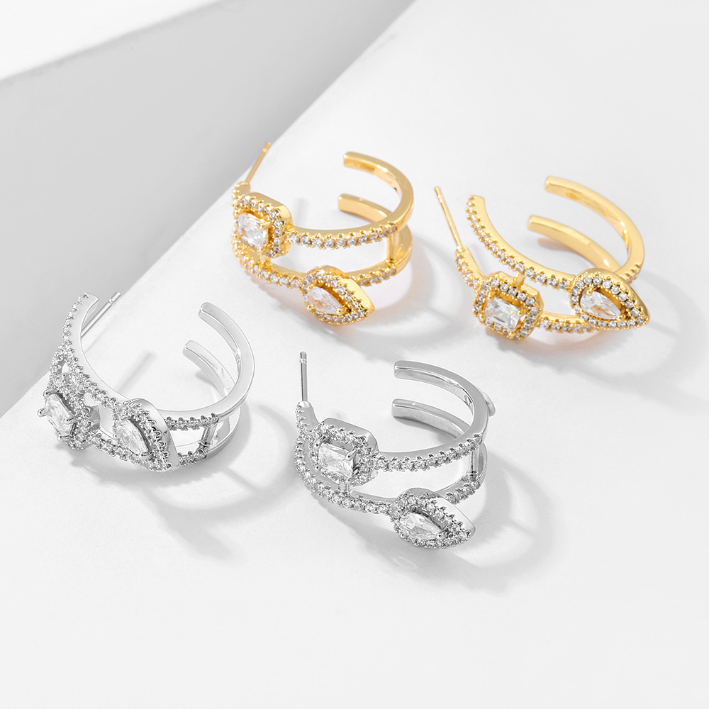 Product information:Color: white gold plated, white gold plated Applicable population: Female Material: Copper Shape: Geometry