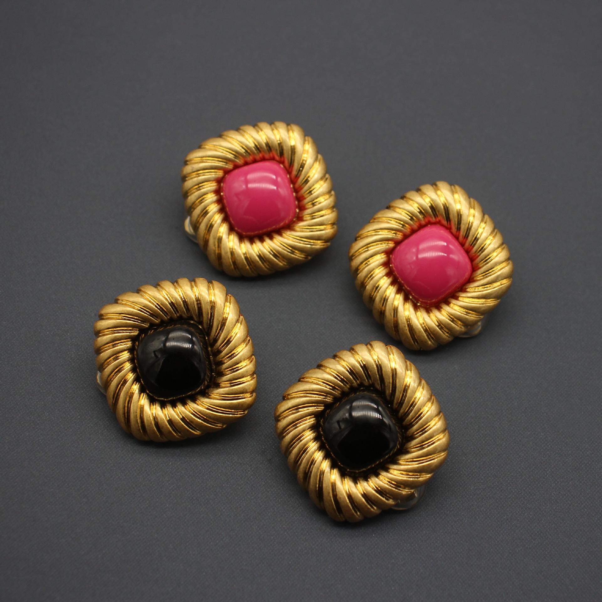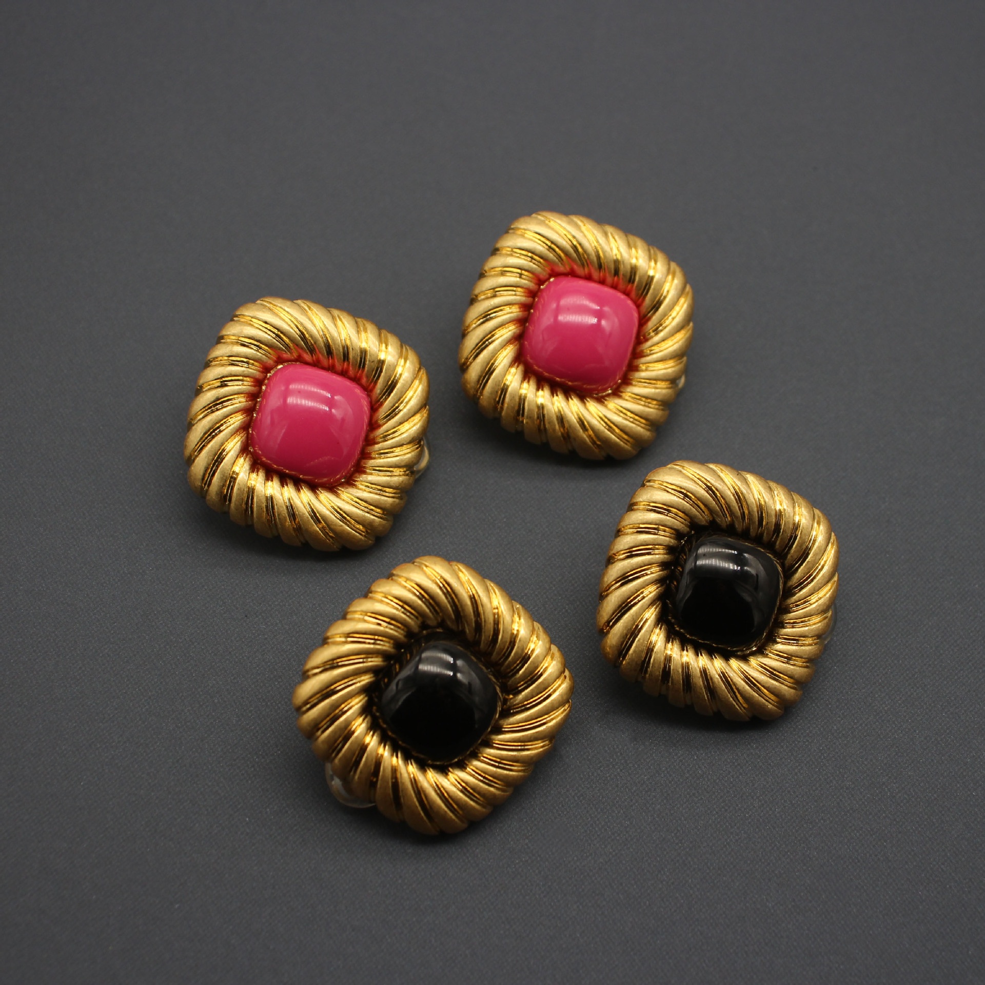 Product information:Treatment Process: Electroplating Color: Rose Red ear clip, black ear clip, Rose Red ear studs, black studs Applicable population: Female Material: Alloy Shape: Geometry Popular elements: quadrilateral Style: Simple