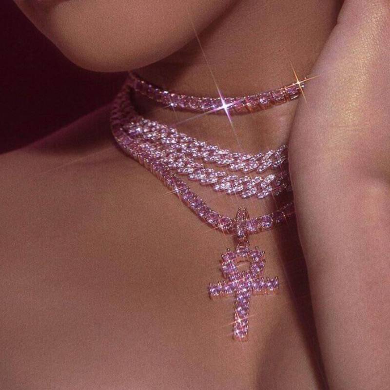 Material: copper inlaid zirconType: necklace, pendantShape: CrossChain style: Tennis chainPerimeter: 51cm (inclusive) - 80cm (inclusive)