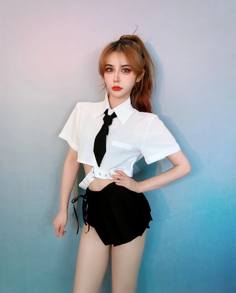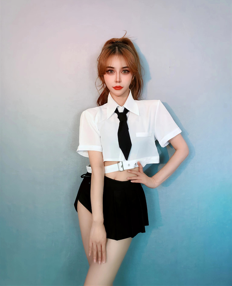 Color: white top + tie pleated skirt (including tie)