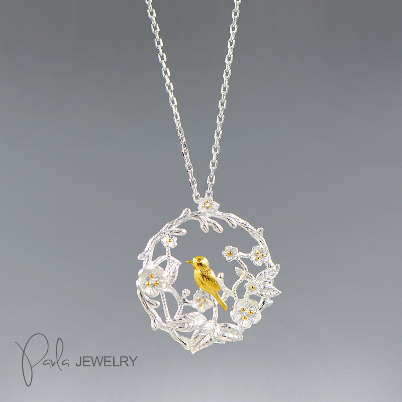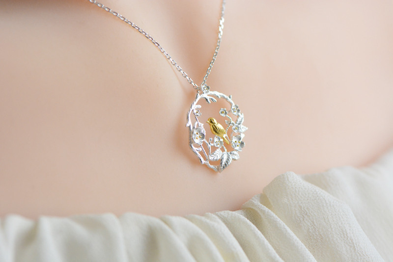 Style: simpleMaterial: SilverProcess: SeikoType: NecklaceStyle: women's styleModeling: FlowersChain style: cross chainPerimeter: 21cm-50cmColor: Bird Flower Necklace