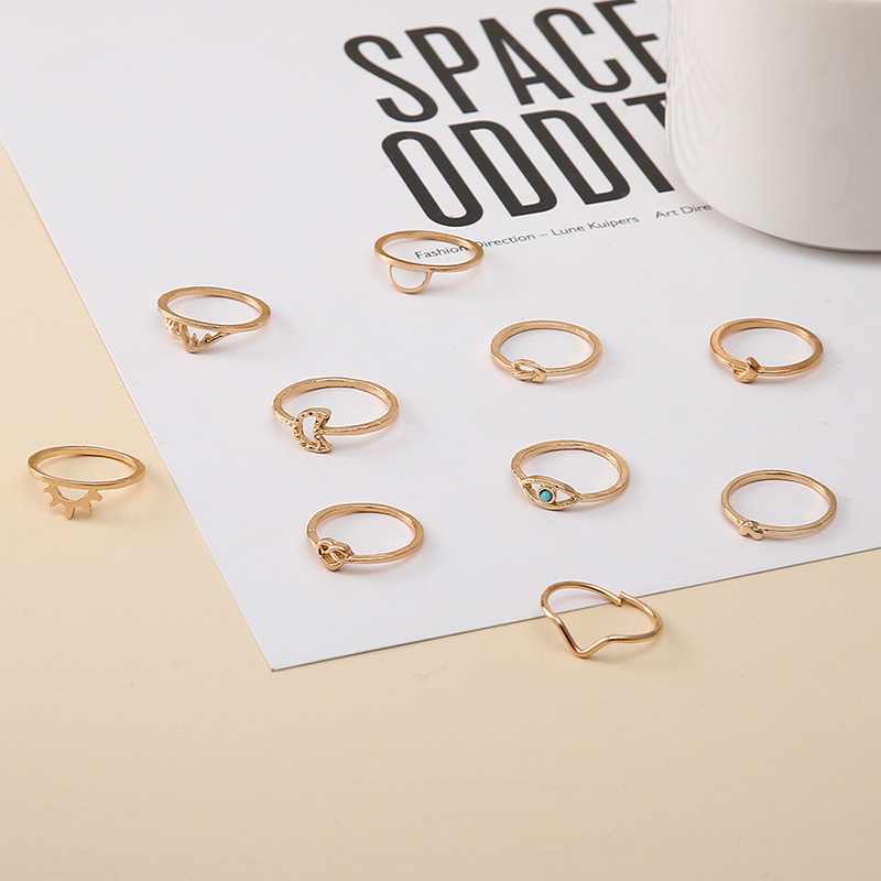 Personality Frosty Wind Love Knotted Moon 10 Piece Rings