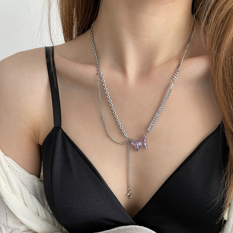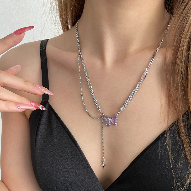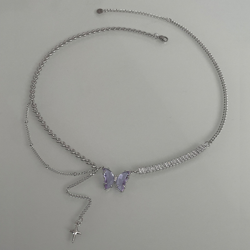 Product information:Color: purple butterfly necklaceApplicable people: womenPendant material: AlloyChain style: curb necklaceMaterial: AlloyModeling: insect, star, animal/ZodiacPopular elements: ButterflyStyle: sweet and cool