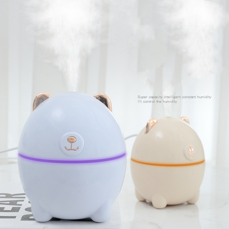 Product name: Bear HumidifierApplicable area: 10-20 square metersRated power: 2W ± 0.5WRated voltage: 5V/500mAWeight: 105g.Power supply mode: USBFog output: 30-40ml/hourMain material: ABS-PPAppearance size: 110*95*95mm