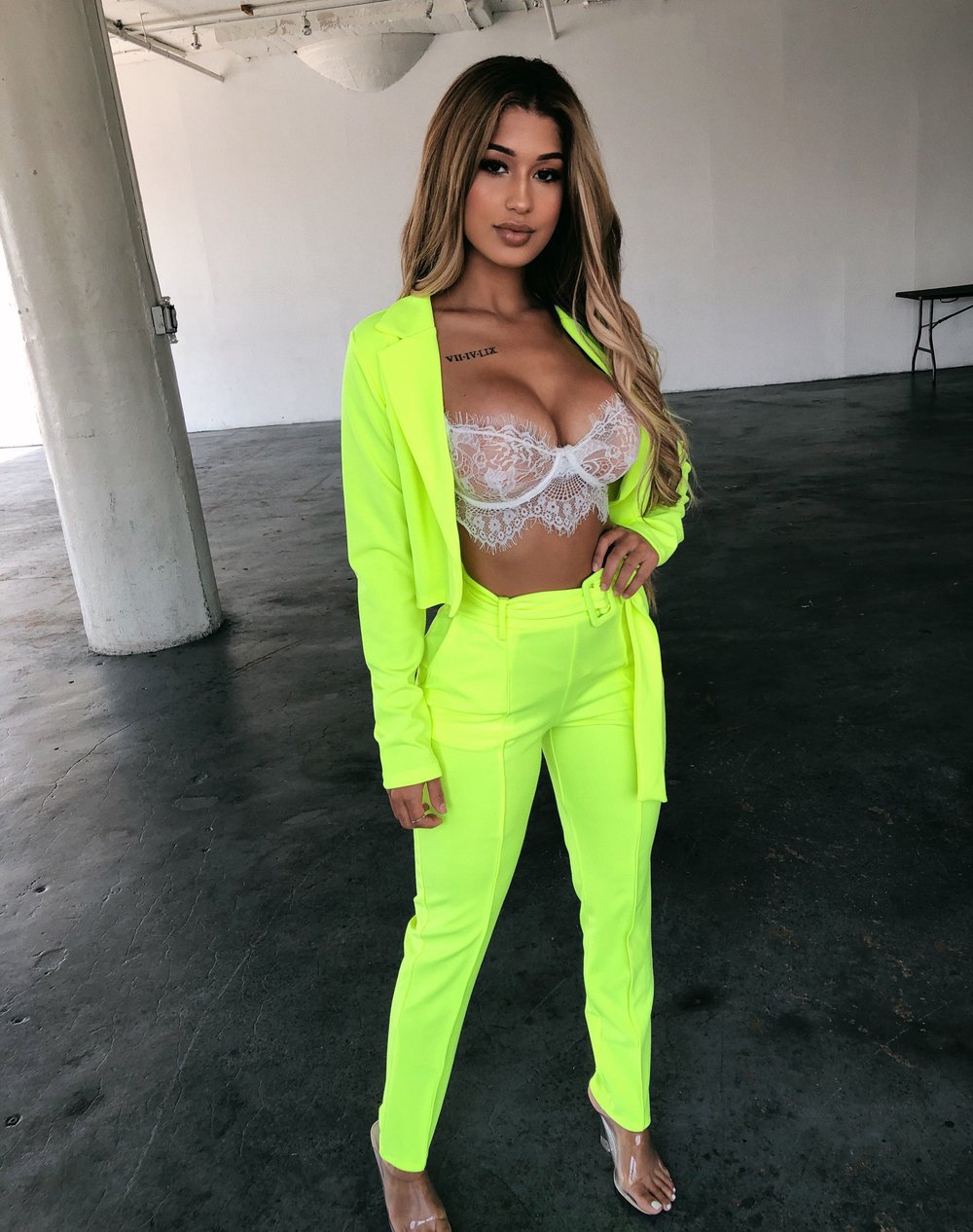 Solid color small suit casual suit 2 piece set with belt