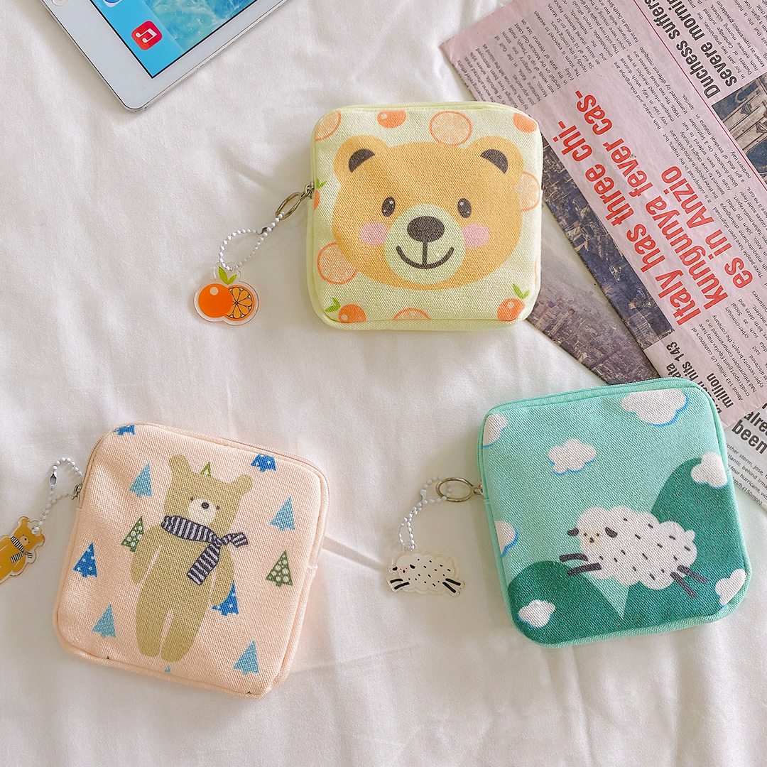 Product information:Shape: squareMaterial: ClothFunction: StorageScope of application: sanitary napkins, cosmetics, medicine, sundries, candyStyle: cartoon cuteSize: 13*13*3cm