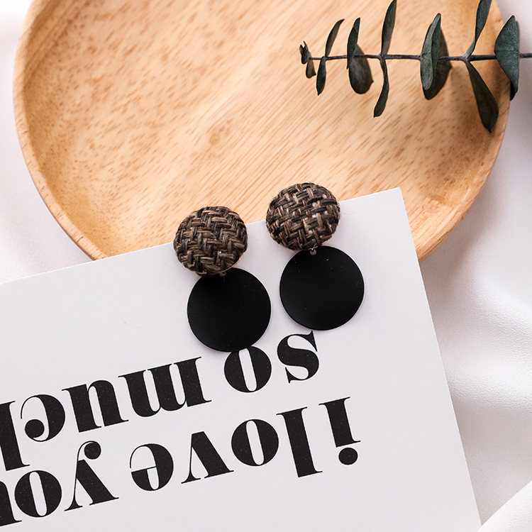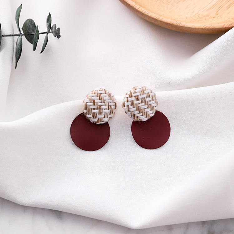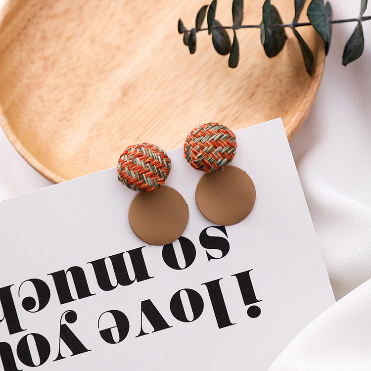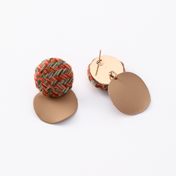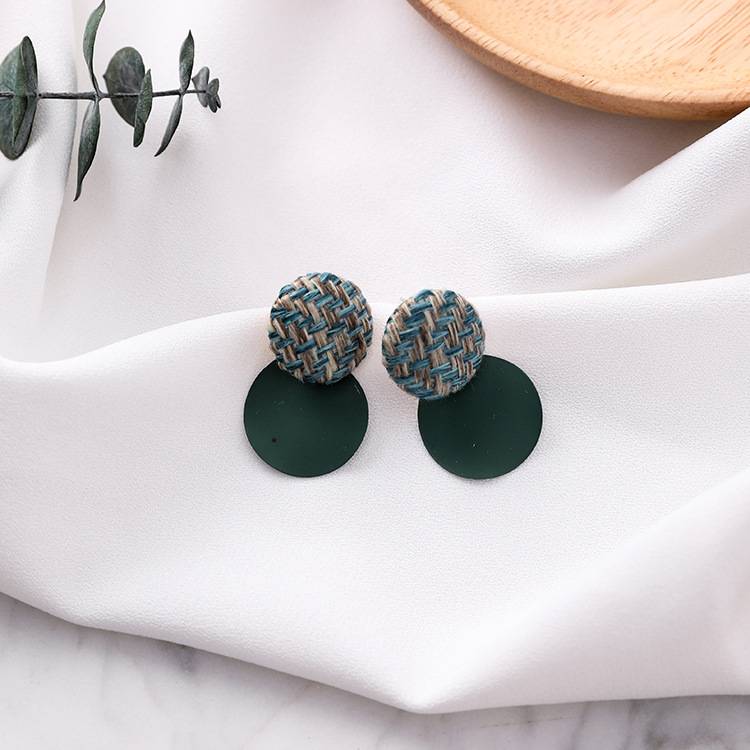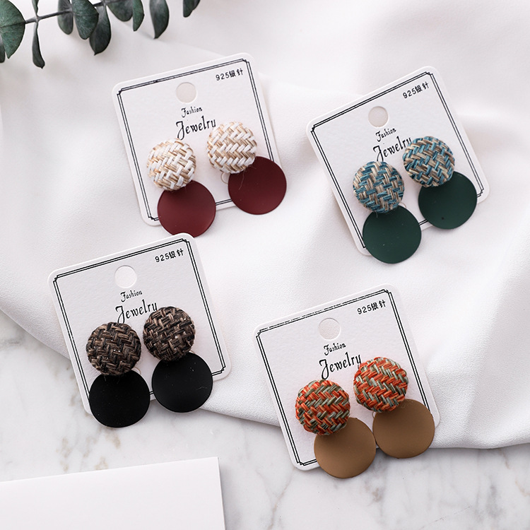 925 silver pin plaid button wavy round earrings