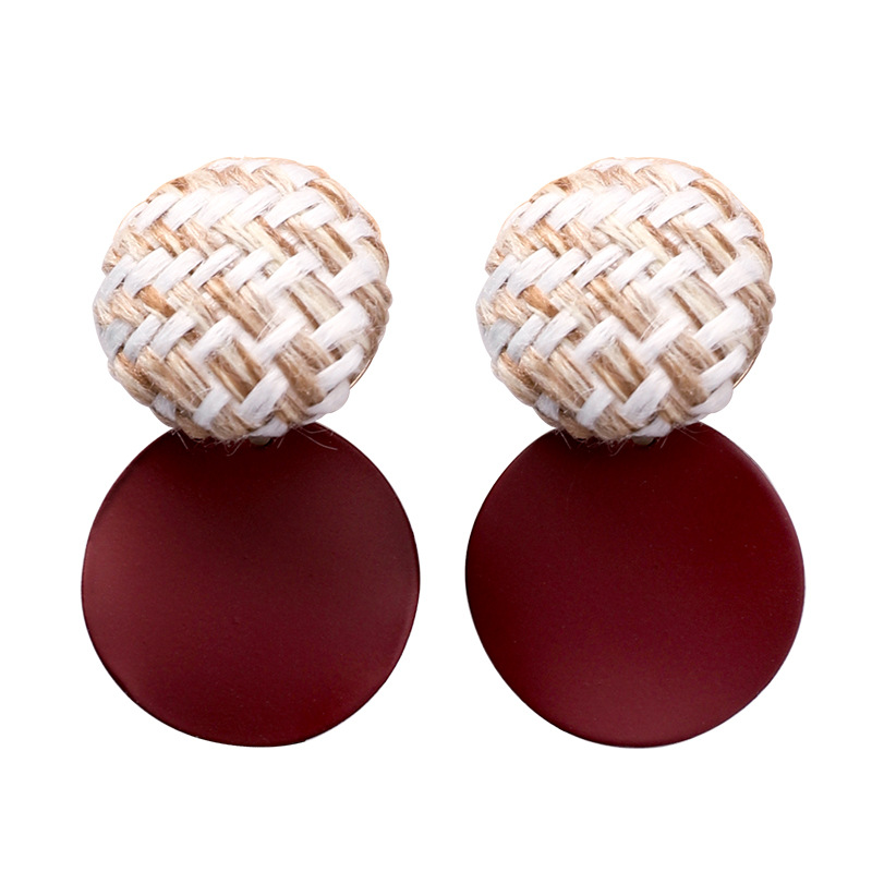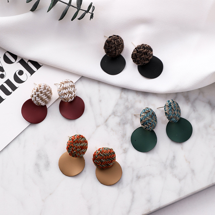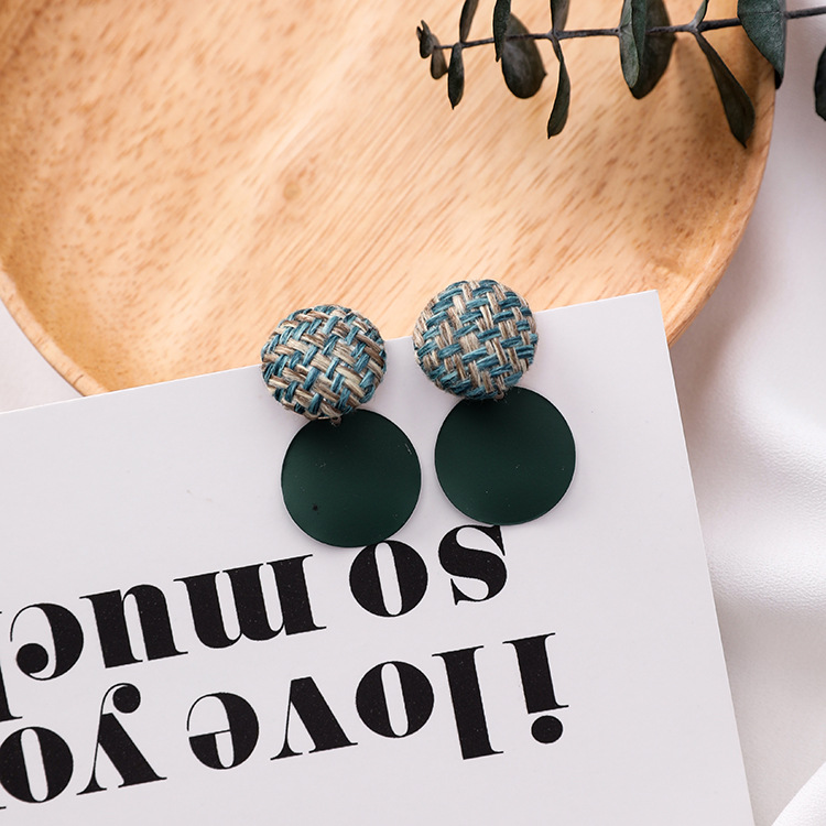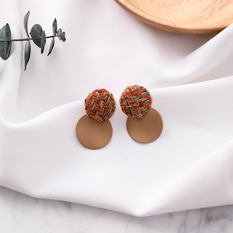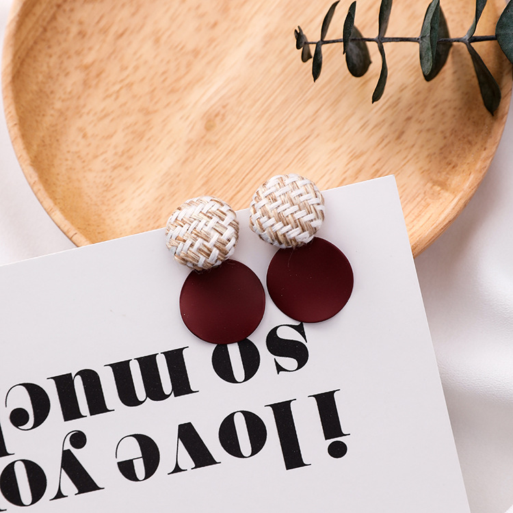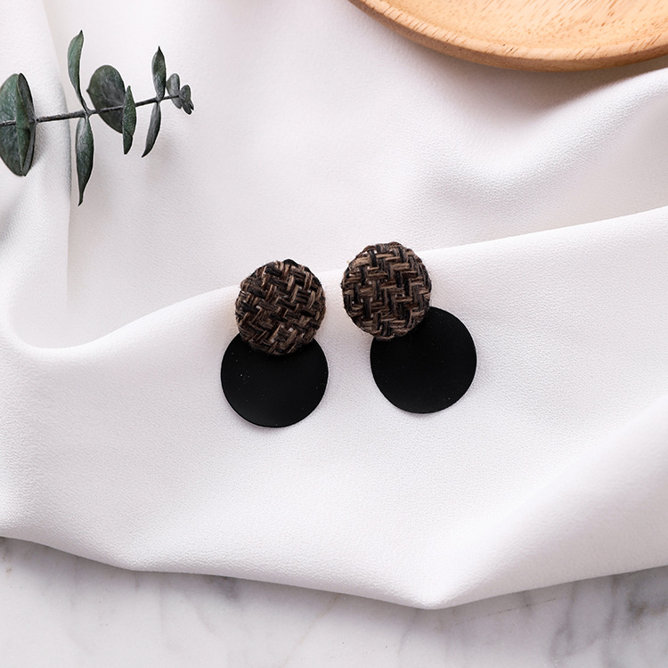 925 silver pin plaid button wavy round earrings