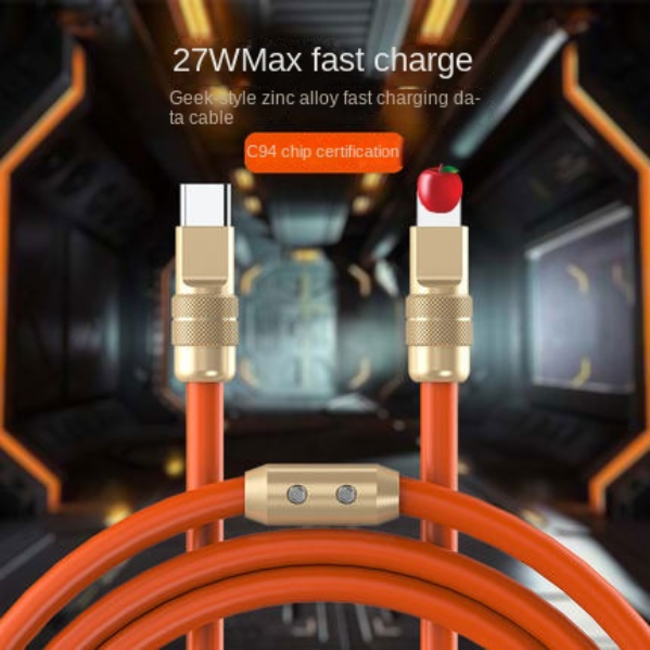 Product Details:Material: Zinc Alloy + SiliconeColor: orange, white, black, blue, redPower: PD27W/120WTransmission rate: 480MbpsPacking list:Silicone data cable*1