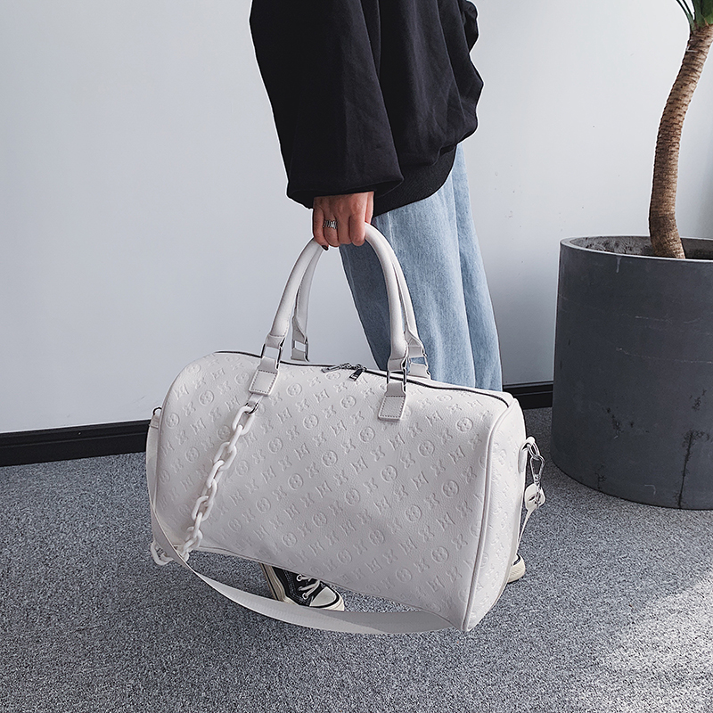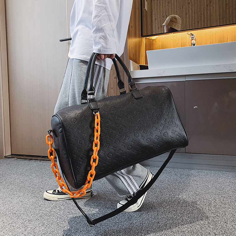 Fabric: PULining: polyesterStructure: internal patch pocket, zipper pocketCapacity: (can put items) clothing daily necessities, etc.Uses; one shoulder slung portableSize: 45 * 29 * 329cmShoulder strap 72cm