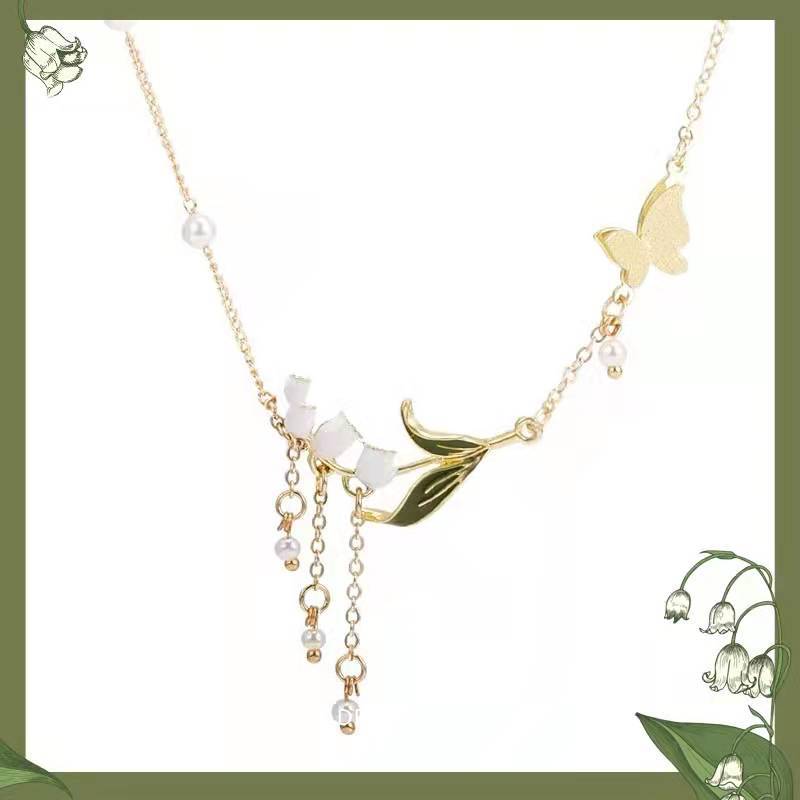 Color: red, purple, green, pink fancy, Bells of Ireland, Pansy style, orange, green leaves, leaf necklace