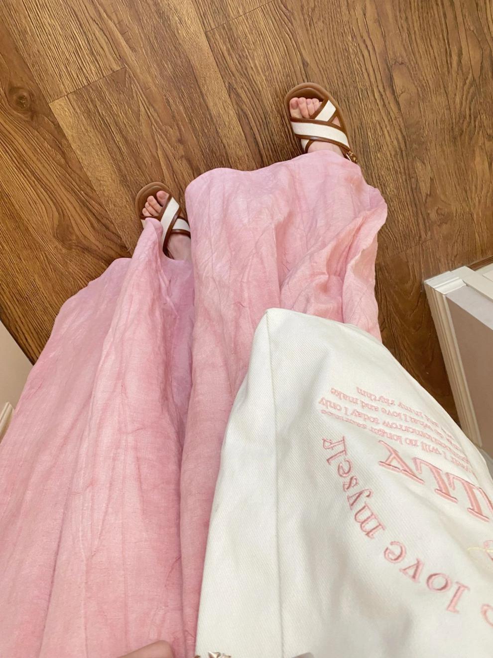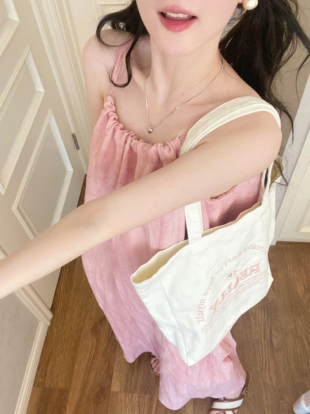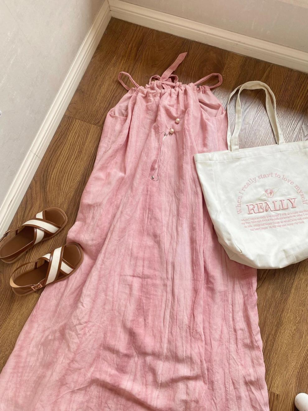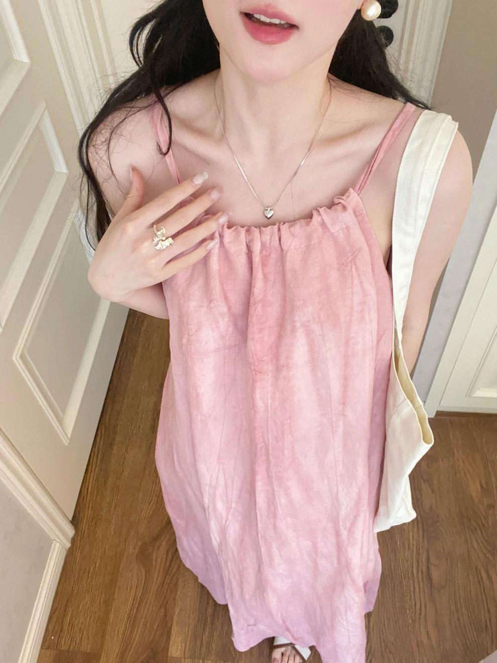 Product information:Fabric name: linen Color: Pink Waist type: wide waist Size: S,M,L,XL Combination form: Single piece Sleeve length: sleeveless Skirt Category: Dress Craft: collage/stitching