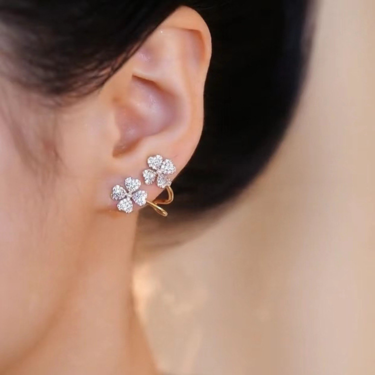 Women's Fashion Flower Earrings With Zirconia Pearls
