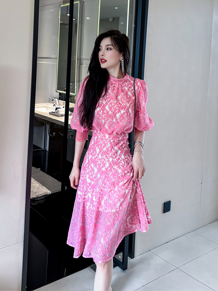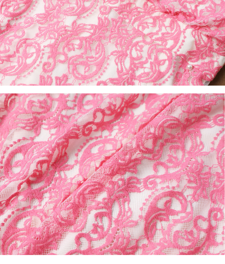 Product information :Type: high waist.Placket: zipperCollar: stand collarSleeve length: Seven-point sleevePopular elements/techniques: embroidered lace, gauze and laceSize Information:Size: S M L XLPacking list:Dress *1