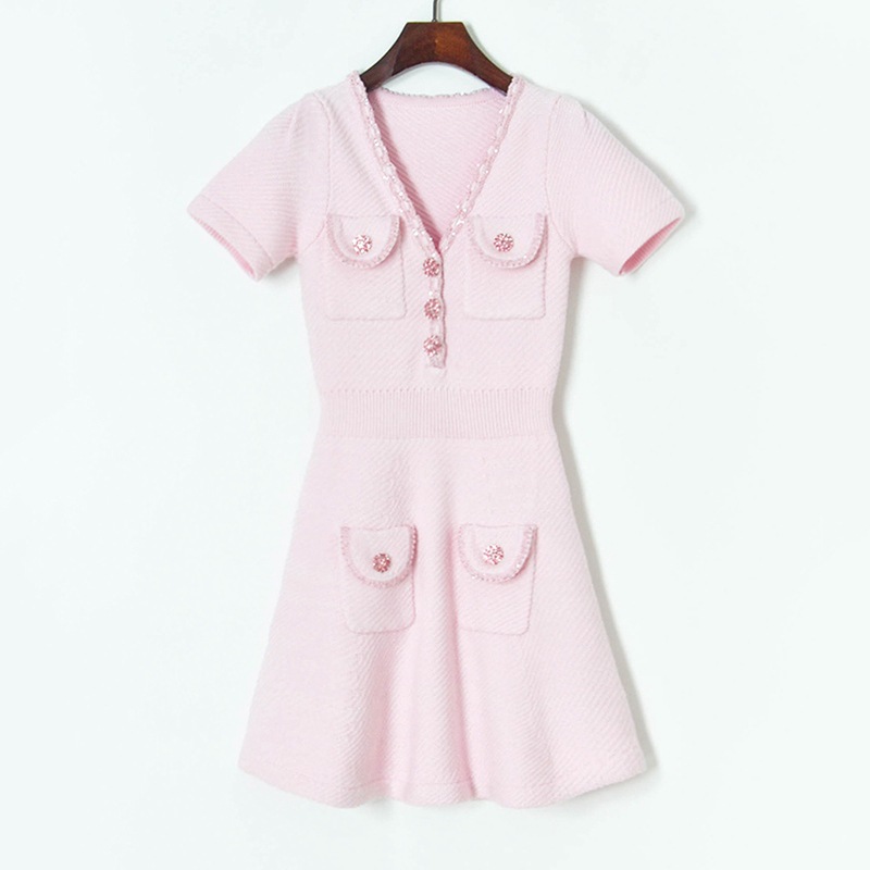 Color: Pink (pink drill buckle) short sleeve skirt