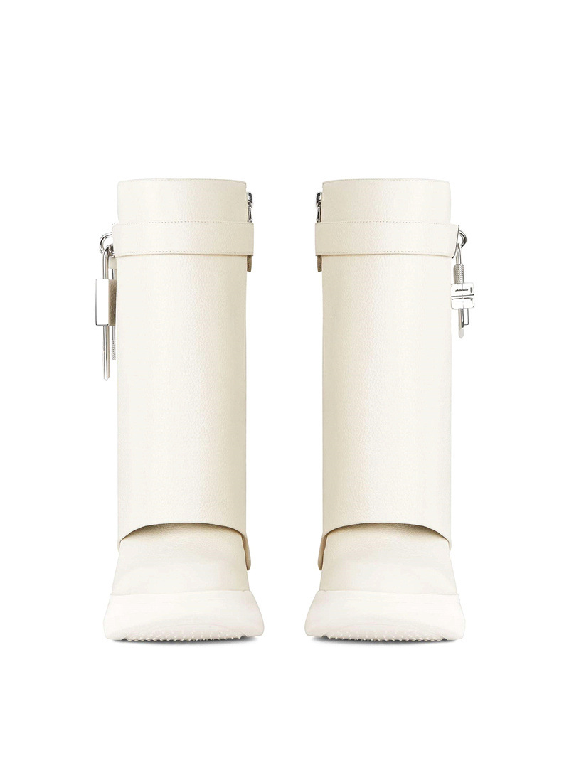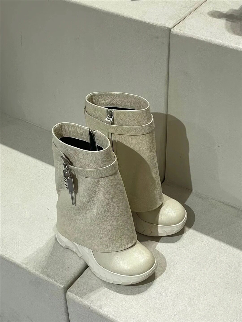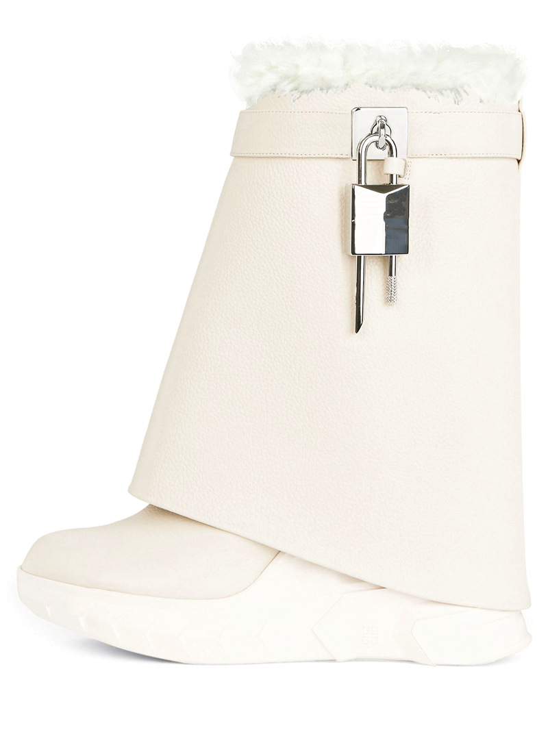 Color: off-white, black, black patent leather, black plus hair, off-white plus hair.