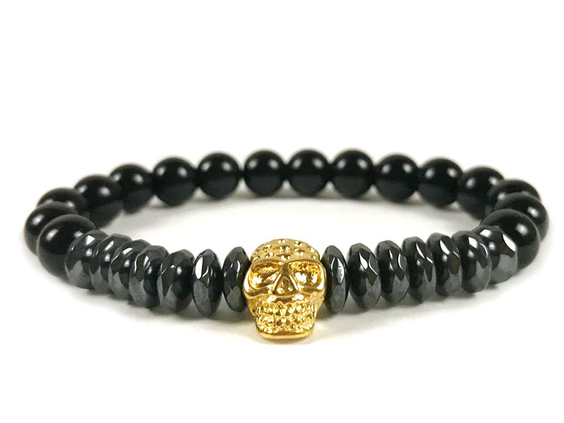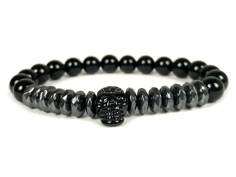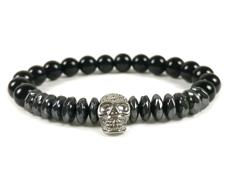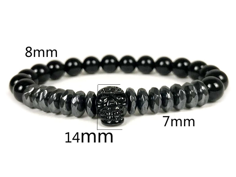 Natural Color-preserving Black Gallstone Stainless Steel Skull Northskull Bracelet