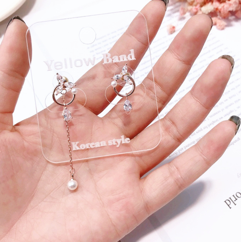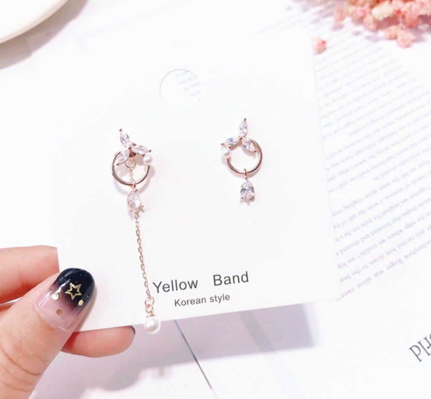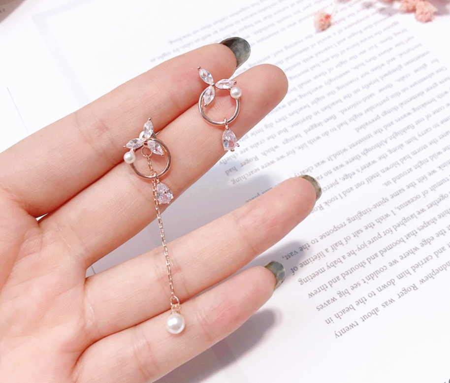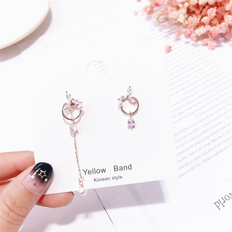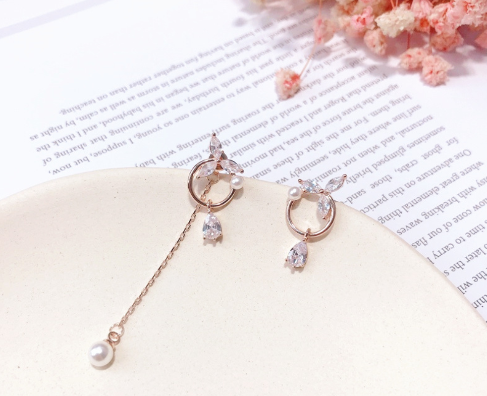 Korea Dongdaemun Jewelry 925 Silver Needle Beauty Girl Asymmetric Flower Droplet Drop Earrings
