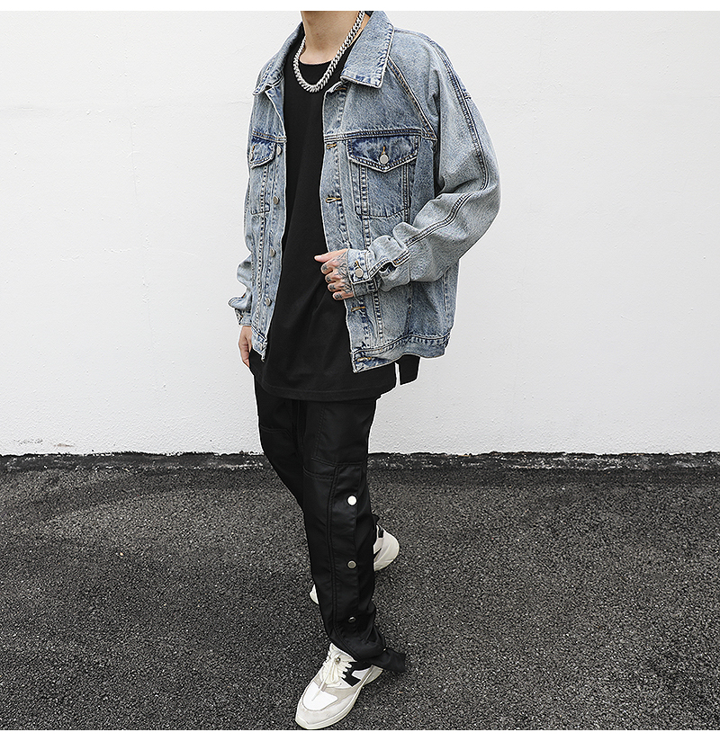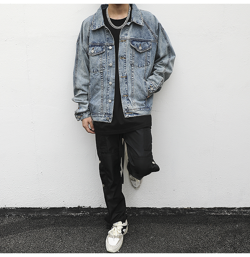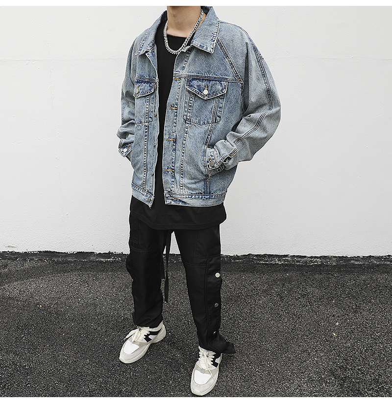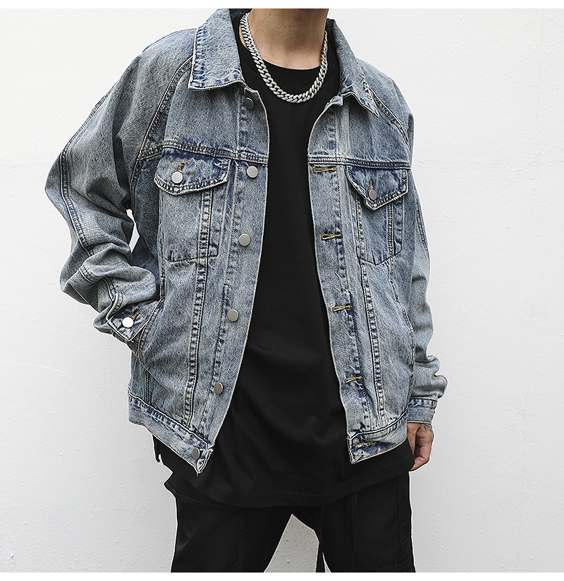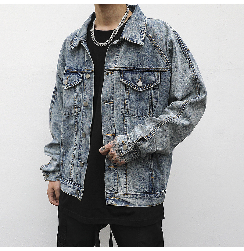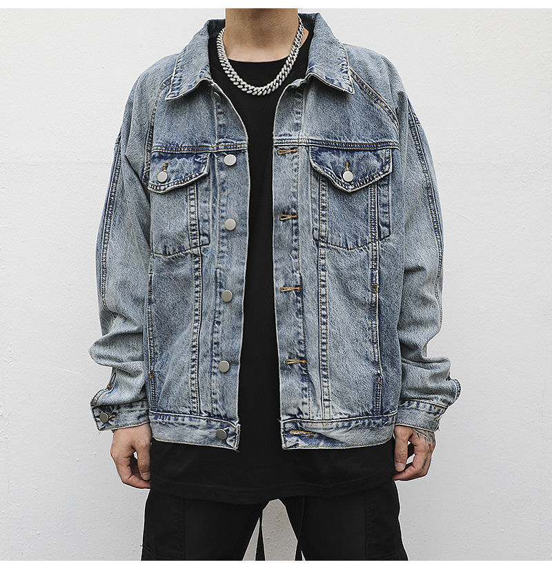 The most special thing about this denim jacket is its very retro stone wash.There are a lot of stone texture on the surface, as if you have worn it for many yearsThe cut is relatively loose and the upper body effect is really great