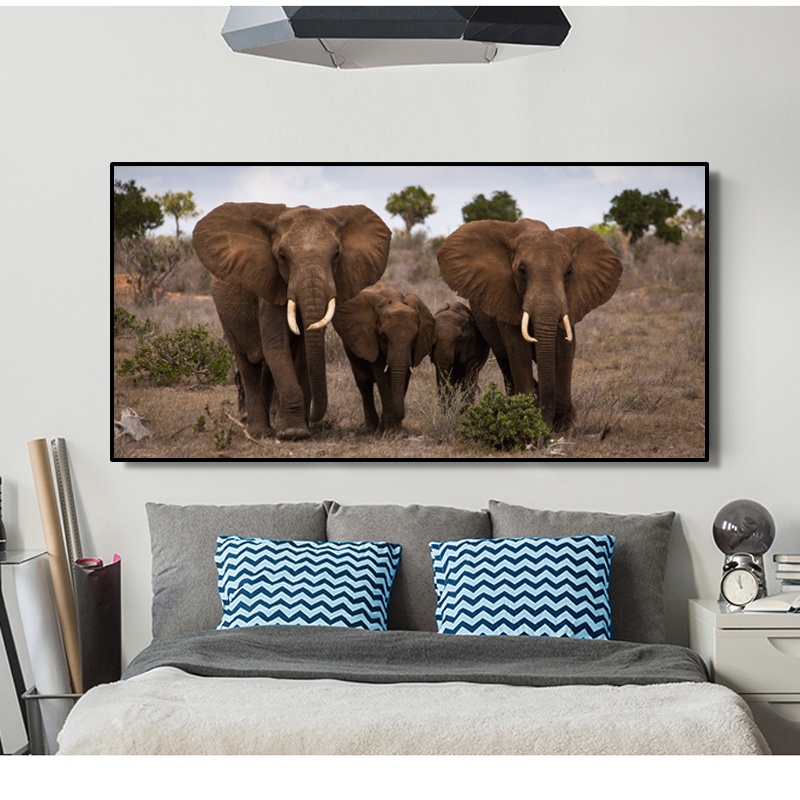 Black And White Animal Poster African Wild Elephant Family Portrait Home Decor