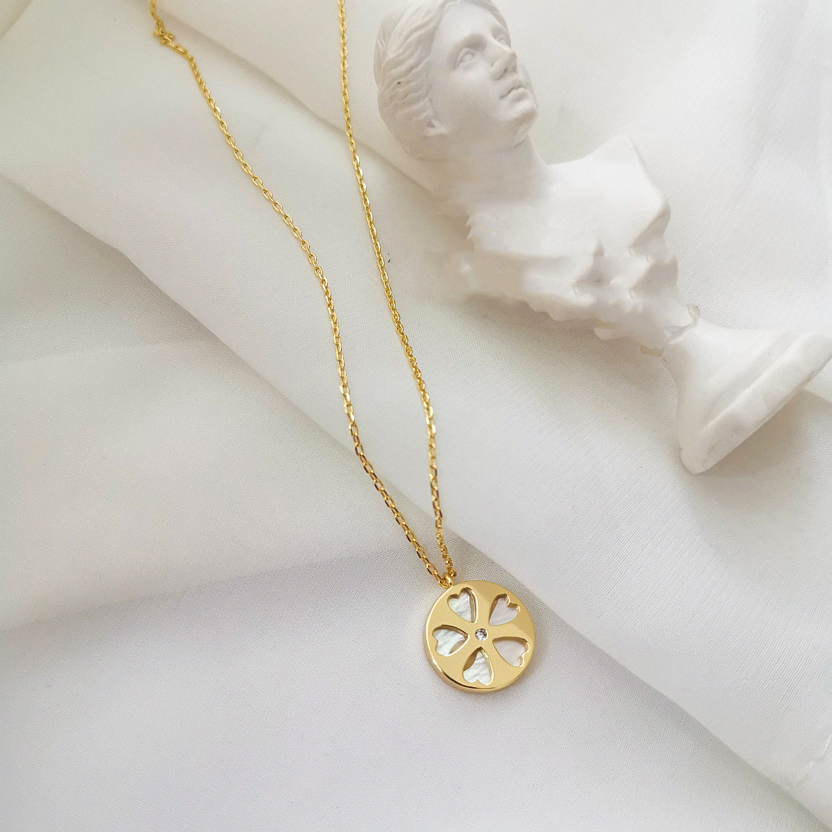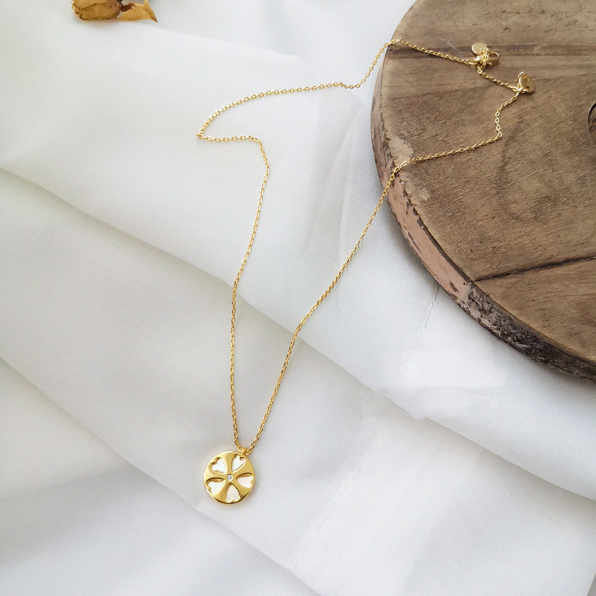 Material: copper/alloy/shellColor: 14K goldProduct size and weight: chain length 41.5cm extended chain 4.3cmType: NecklaceStyle: Women's