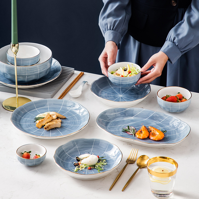 Stone Pattern Underglaze Ceramic Tableware With Gold Edging