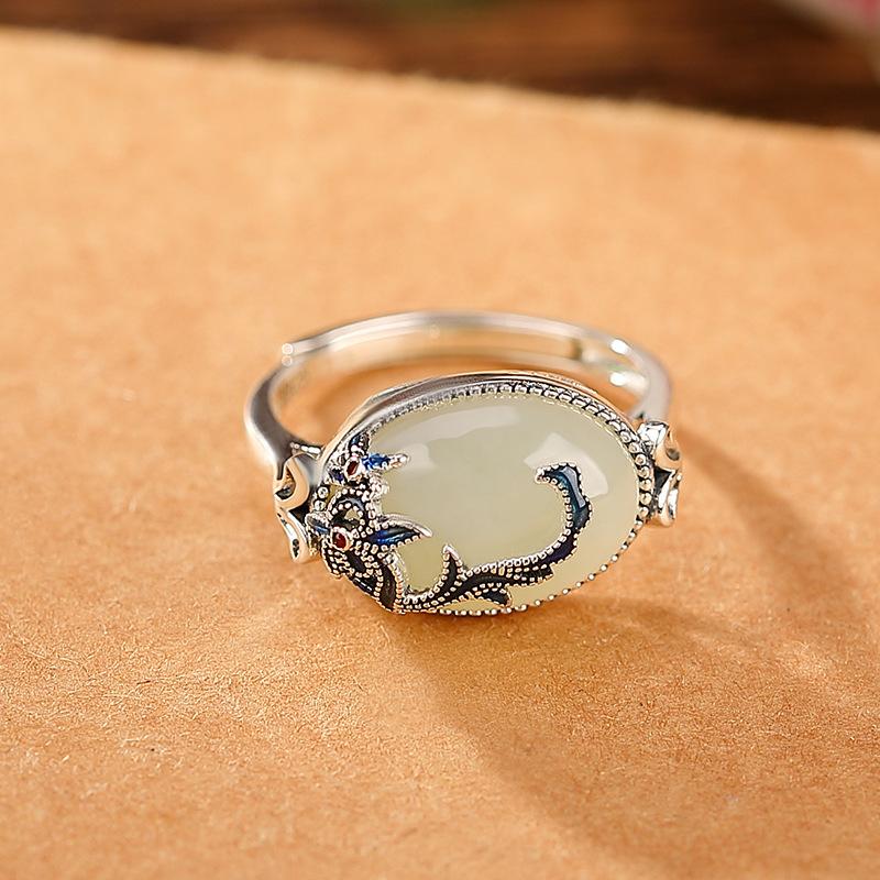 Product information:Type: Ring Treatment Process: inlaid jade Color: Silver Applicable population: Female Size: adjustable opening Material: Silver Size: 2mm thick or 1.5mm thick