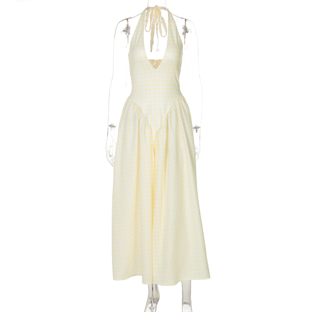 This stunning deep V neck dress combines sexy allure with elegant sophistication. The strategically placed hollow out details add a touch of mystery while maintaining classiness. The halter neckline beautifully frames your collarbones, creating a flattering silhouette that enhances your natural curves.