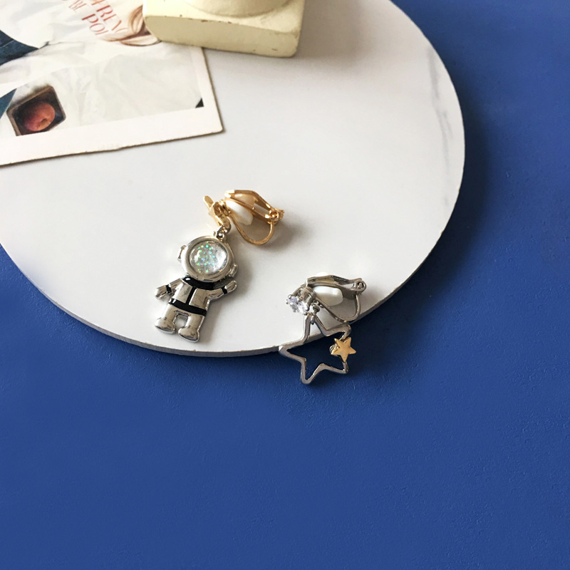 A pair of S925 silver needle astronaut earrings, a pair of ear clips