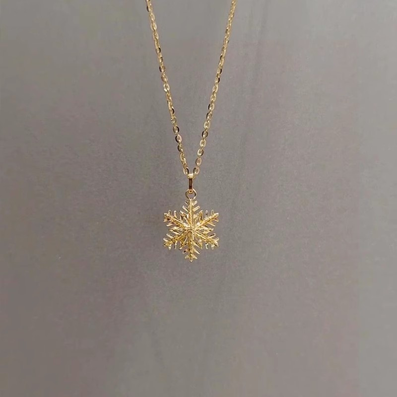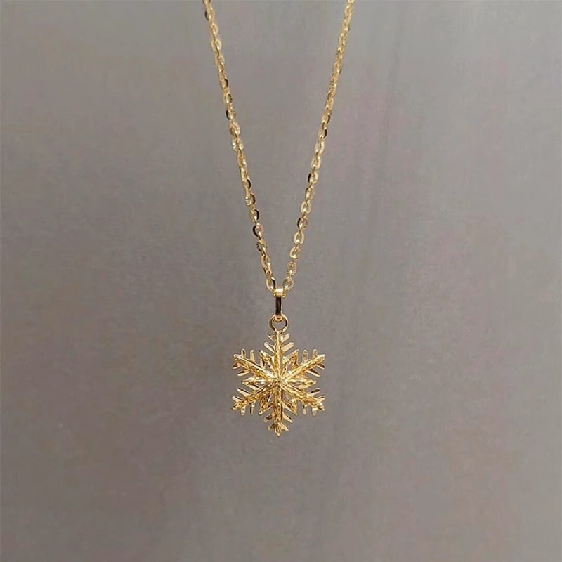 Product information:Color: gold snowflake necklaceApplicable people: womenChain style: Regular chainMaterial: CopperPopular elements: SnowflakeStyle: Sweet