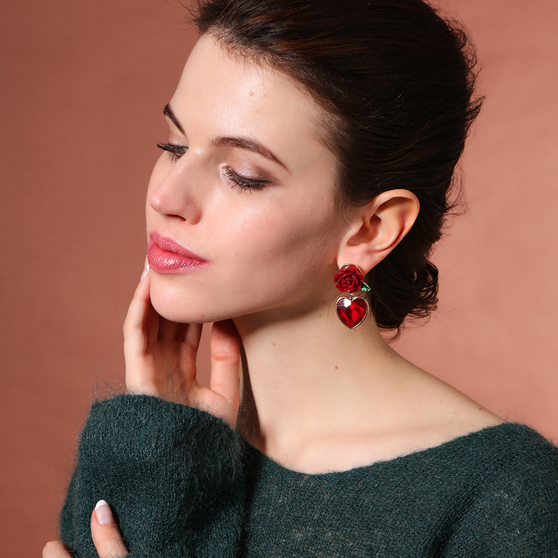 New flower peach heart earrings