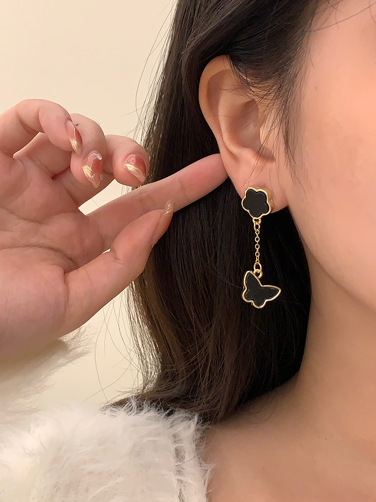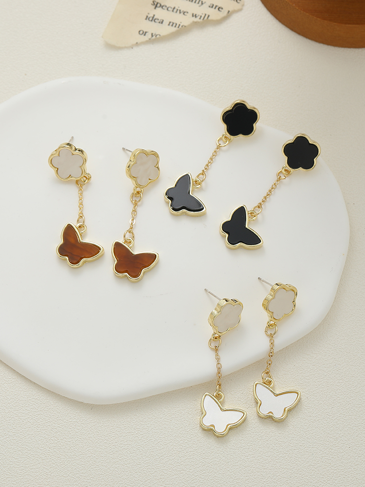 Product information:Material: Alloy/silver plated/gold plated Color classification: white Brown sterling silver needle ear studs, black sterling silver needle ear studs, white sterling silver needle ear studs Size: 4.6x 1.5cm