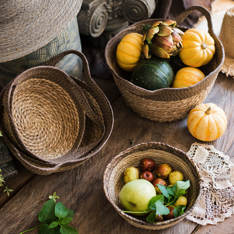 Product category: Natural straw woven soft storage basketMaterial: Stainless steelScope of application: changing clothesName: Straw storage basketMaterial: natural vanillaApplicable scenarios: storage, etc.