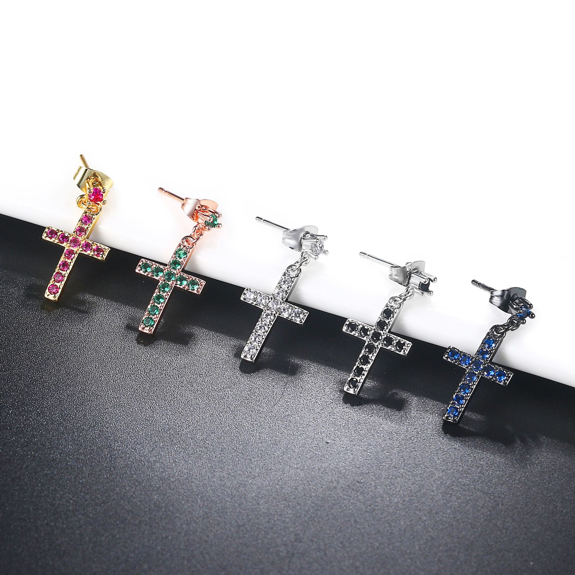Color: white gold and white stone, rose gold and white stone, gold and white stone, gold and red stone, black gold and blue stone, white gold and black stone, rose gold and green stone