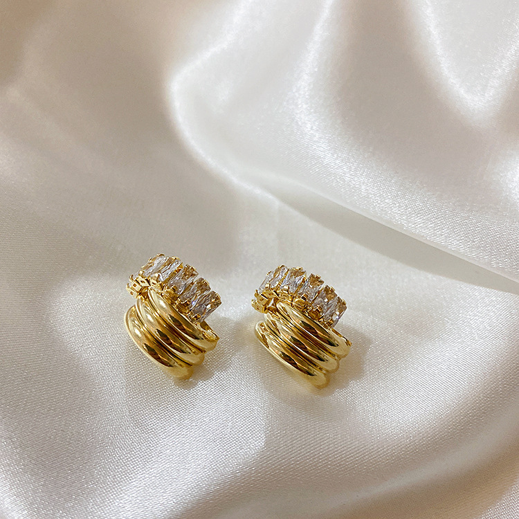 Color: gold zircon staggered stud earrings 925 silver needle plated with real gold, silver zircon staggered stud earrings 925 silver needle plated with real gold