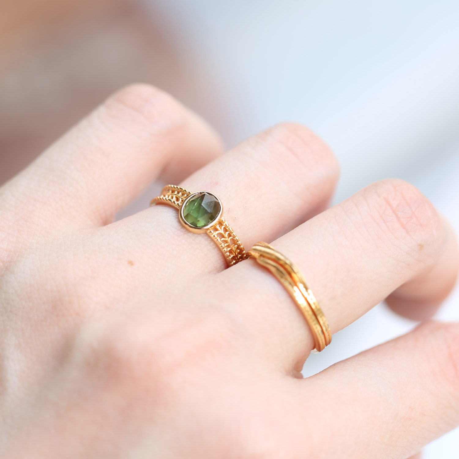 Product Name: Tourmaline Tree Trunk Hollow Pattern Ring