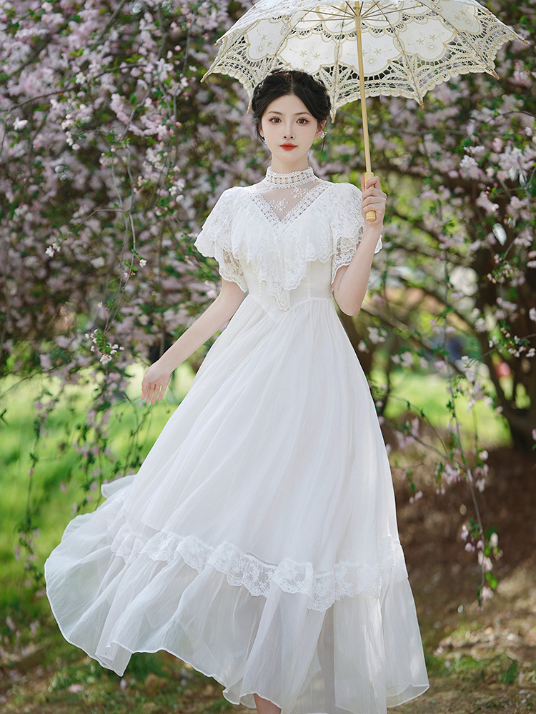 Product information:Pattern: solid color Fabric name: Polyester Color: White Waist type: high waist Size: S,M,L,XL Skirt Category: Dress Style: retro style
