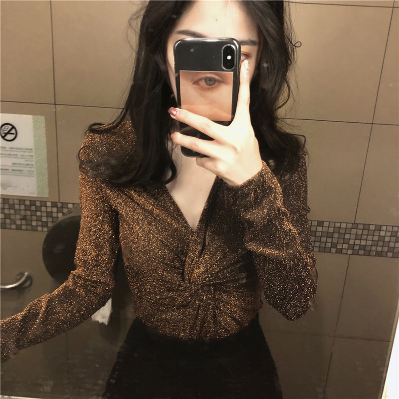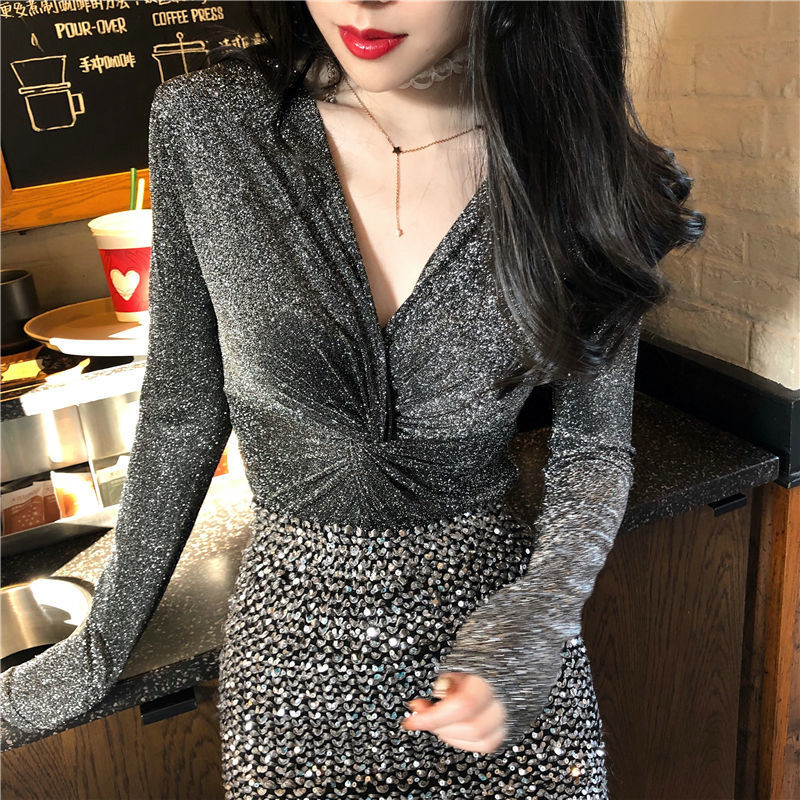 Style: Simple commuting/Korean versionLong sleeves: Long sleevesCraft: OthersNeck type: V neckPopular elements: Sparkles, splices