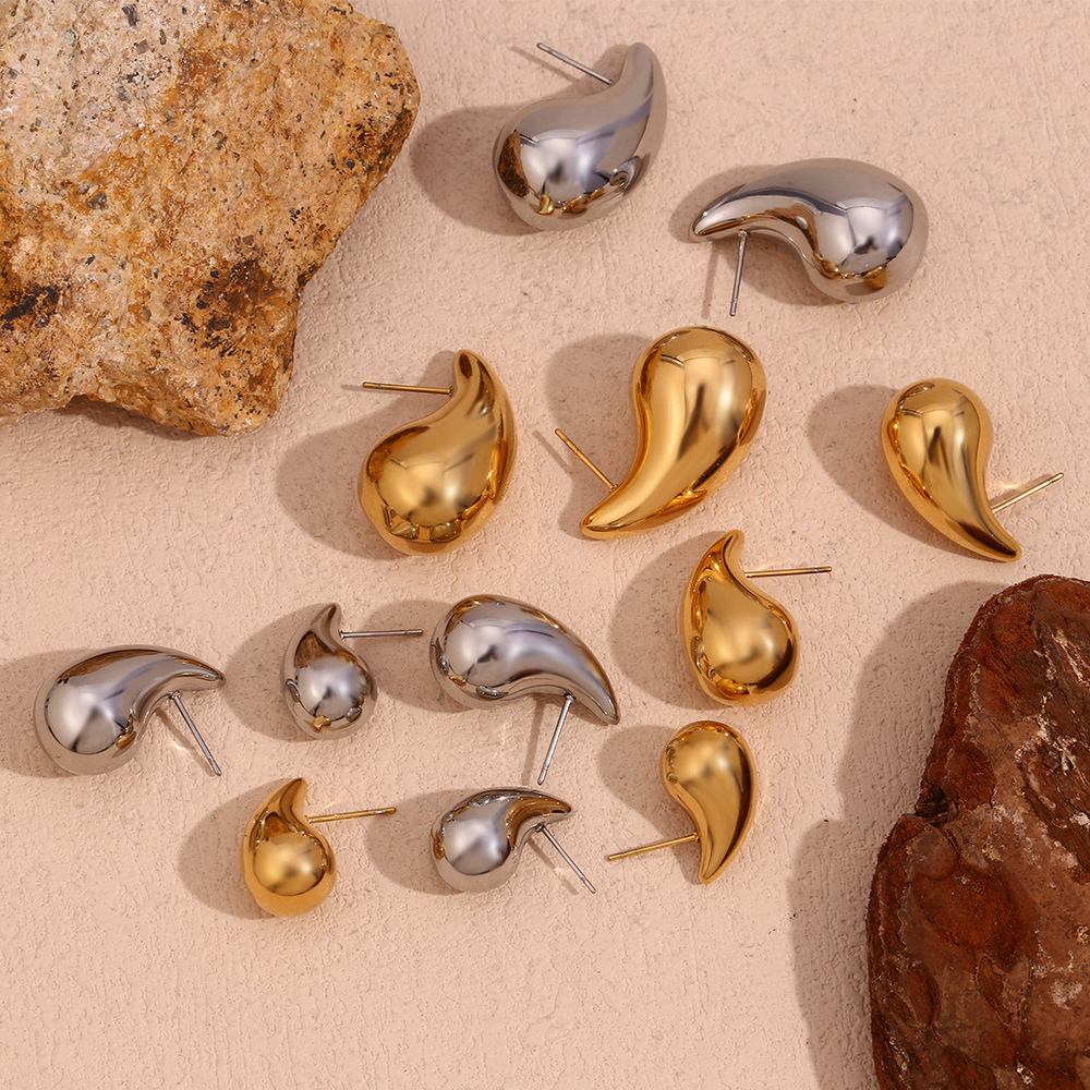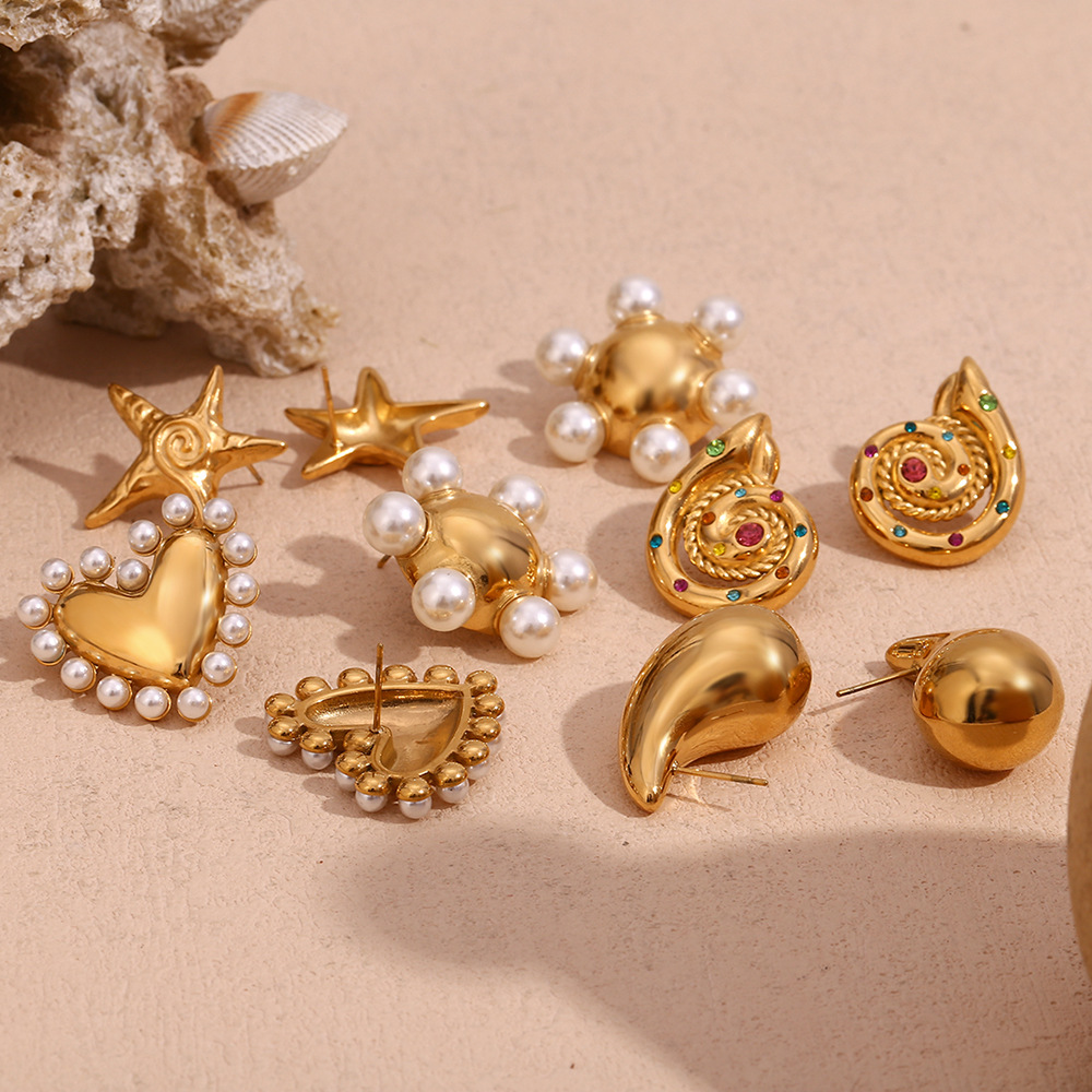 Color: Hollow three-dimensional pear-shaped stud earrings-gold, hollow three-dimensional pear-shaped stud earrings-steel color, small size hollow water drops stud earrings-gold, small size hollow water drop earrings-steel color, S Mini hollow small water drop earrings-gold, S Mini hollow small water drop earrings-steel color, outer ring pearl luster love heart stud earrings-gold, outer ring pearl luster love heart stud earrings-steel color, outer ring pearl luster round wheel stud earrings-gold, outer ring pearl luster round wheel stud earrings-steel color, twist snail shell miniature inlaid earrings-gold white diamond, twist snail shell miniature inlaid earrings-Golden-colorful crystal