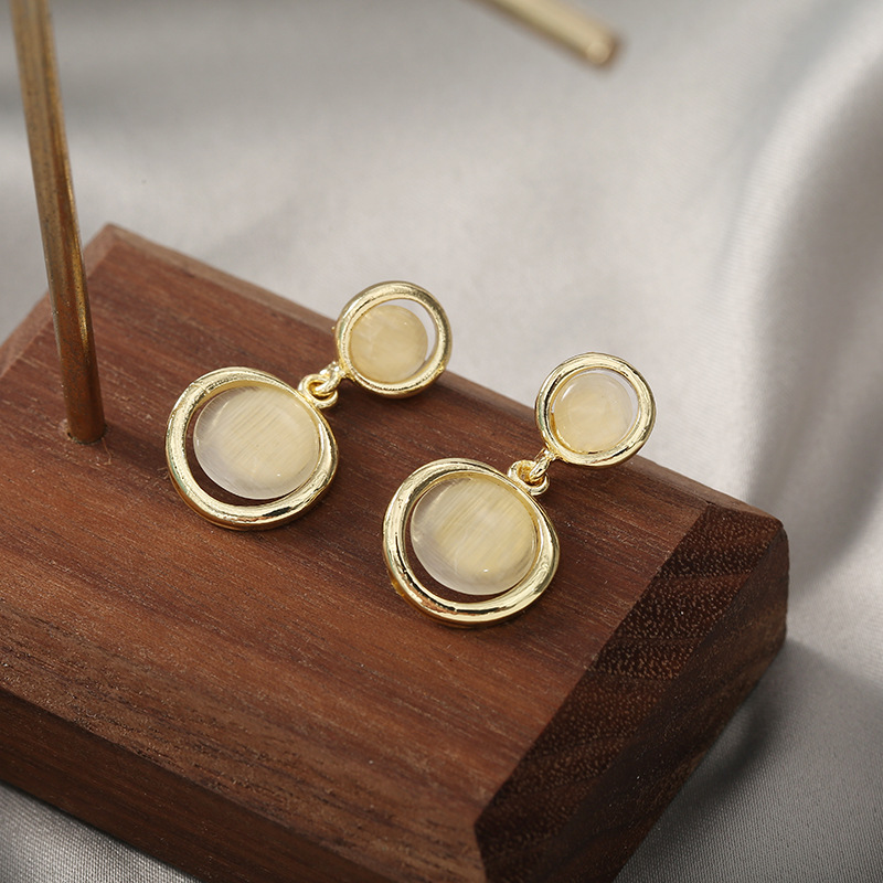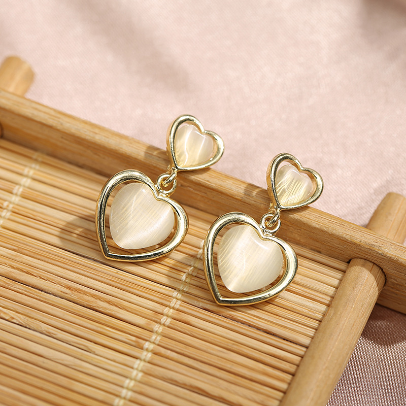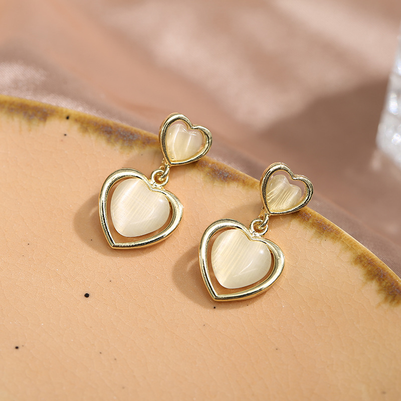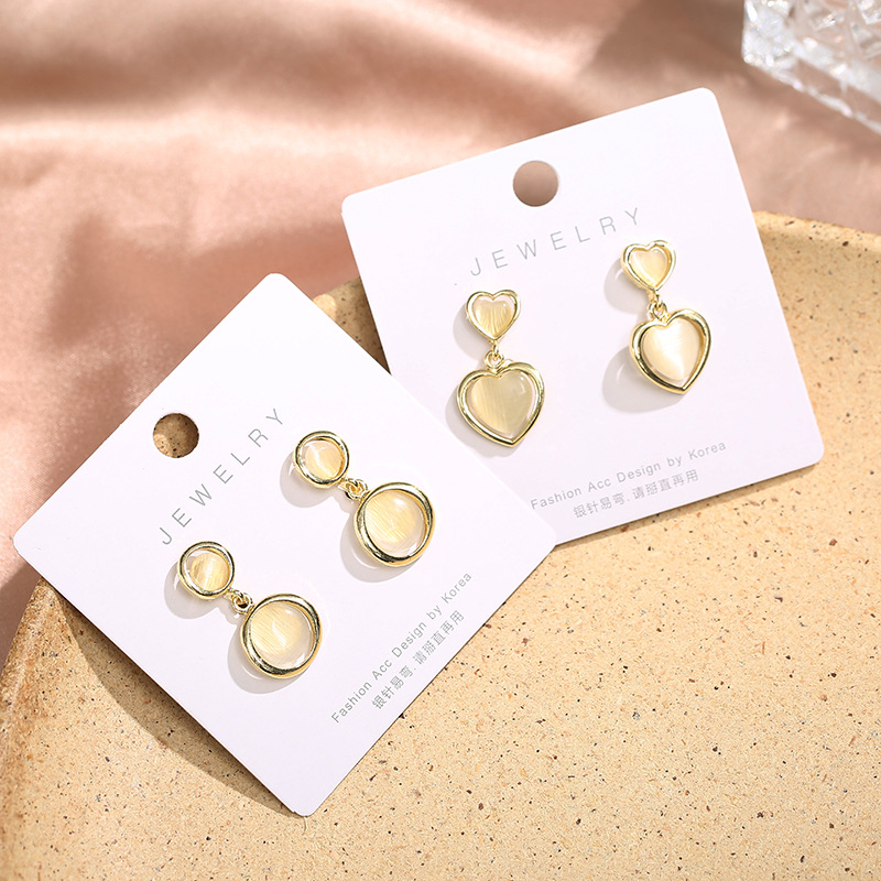 Product Information: Material: silver needle, alloy, opalModeling: GeometryInlaid material: alloy inlaid artificial gems/semi-precious stonesColor: round, heart-shapedPopular elements: retro, geometricPacking list:Earrings * 1